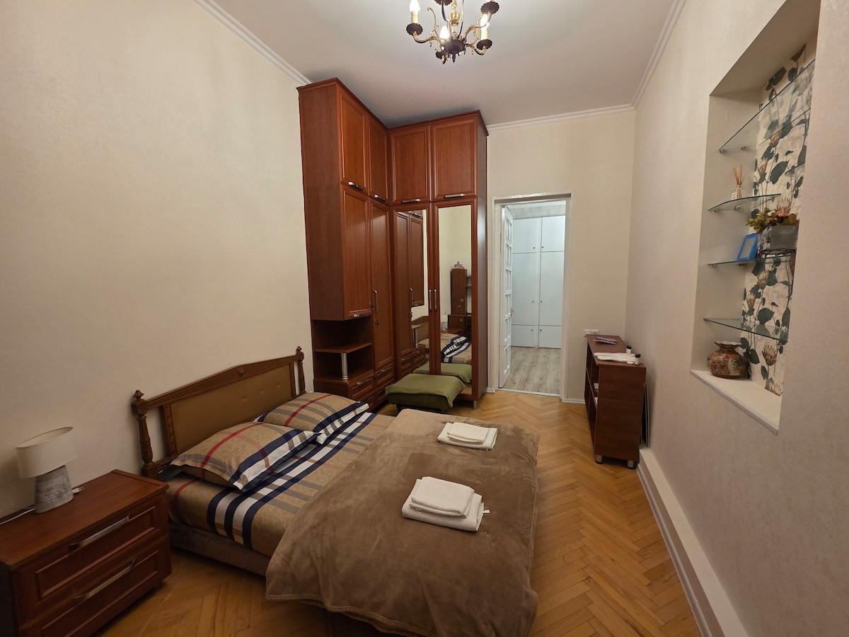 My Studio Apartment is located close by to Rustaveli avenue for 2 min. walk and newly Renovated with new furniture. Fully equipped kitchen for short & long stay. There are excellent connections to public transport Metro, Bus, Mini bus. The area is very safe so you can walk home at night, it's also very easy to catch a taxi anytime.Keep it simple at this peaceful and centrally-located place. The apartment is suitable as well as for couples & solo travelers