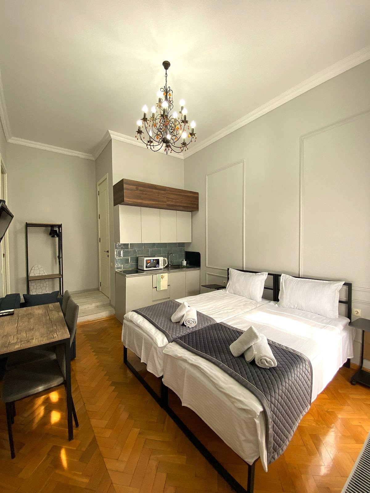 Welcome to Aparthotel Mtatsminda, located in the heart of Tbilisi near Rustaveli Avenue. Set in a historic building, our three newly renovated rooms offer quality mattresses, fresh linens, and kitchenettes for a comfortable stay. Located on the second floor, two rooms share a large balcony. All rooms face Mtatsminda Mountain with beautiful views of St. David’s Church and the Tbilisi TV Tower.