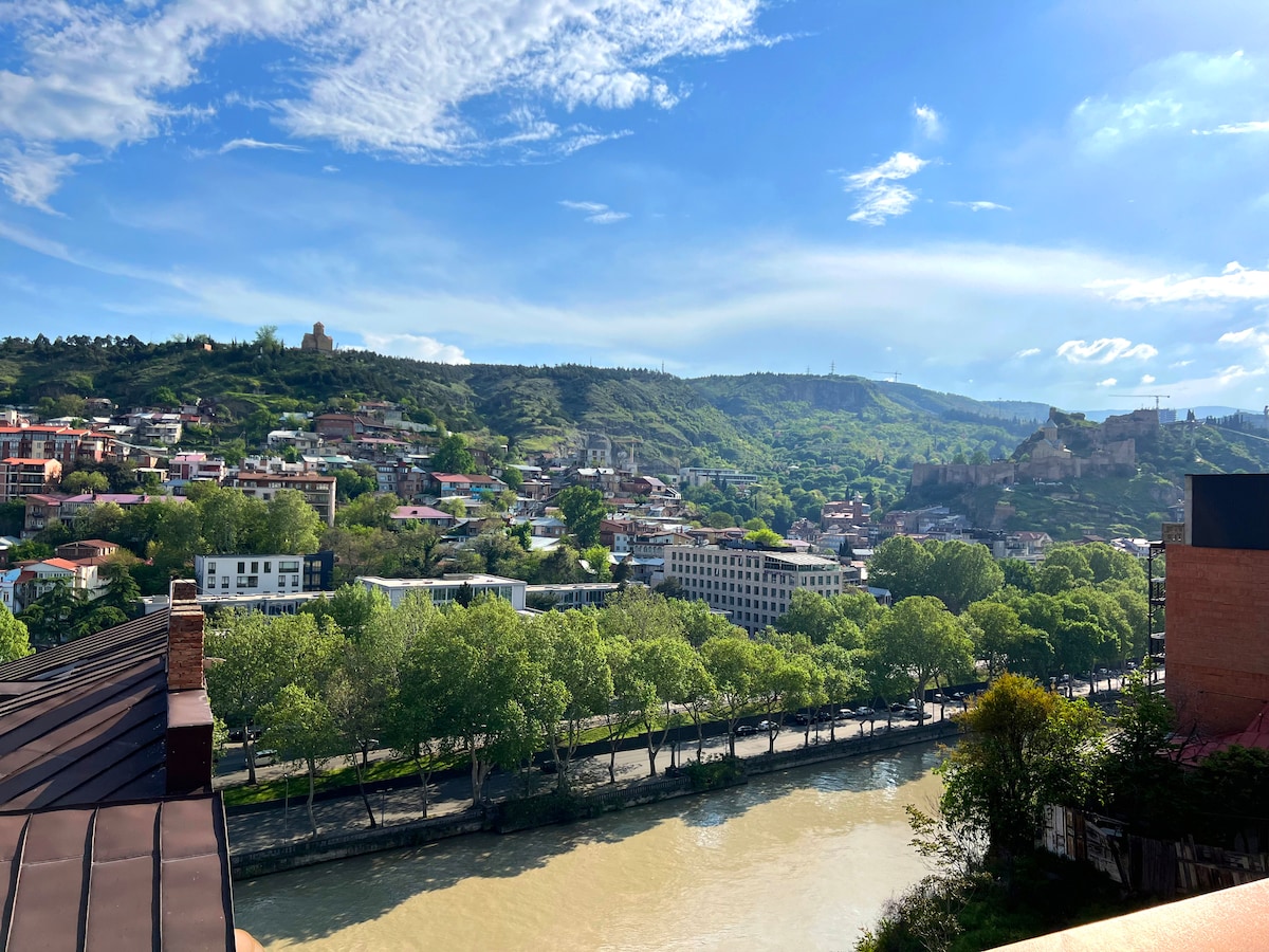 Experience the charm of old Tbilisi from this stylish stay in the historic Metekhi district — right in the heart of the city. Step outside and explore cozy cafés, authentic restaurants, and famous landmarks, all just a short walk away. The room is bright, comfortable, and beautifully designed