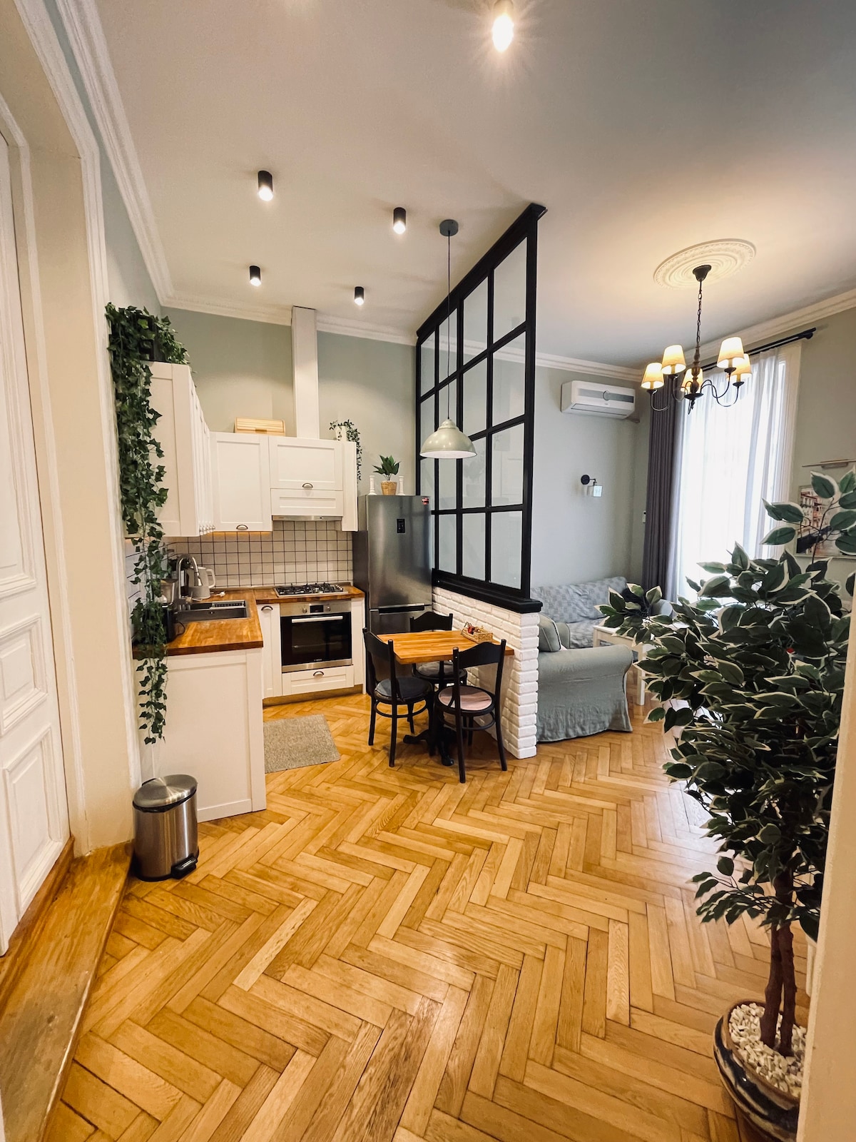 The apartments are located in Old Tbilisi on Ivane Machabeli Street, near Freedom Square. The historic building from the second half of the 19th century, designed in Neo-Moorish style, preserves the authentic spirit of the city. High ceilings, wooden parquet and antique doors are combined with modern comfort. Quiet courtyard, perfect location for walks, cafés and museums nearby. Self check-in and fast Wi-Fi.