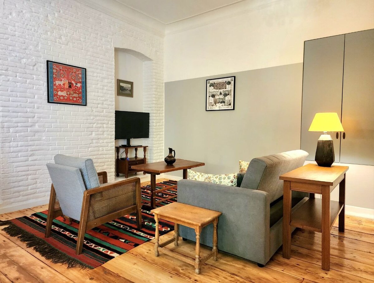 This place has a unique style all its own, with great contrast between the historic buildings vintage exterior and apartments modern interior, guests will experience best of both worlds. The apartment is the heart of the city center, located 2 min. from Rustaveli avenue, right behind of the historic Parliament building. While being right in the center, the neighborhood is very quiet and peaceful.