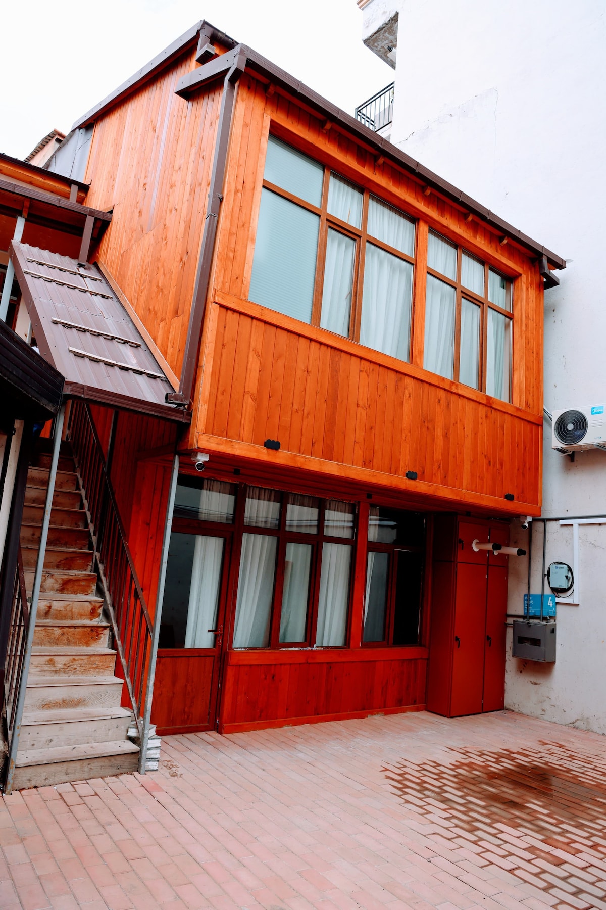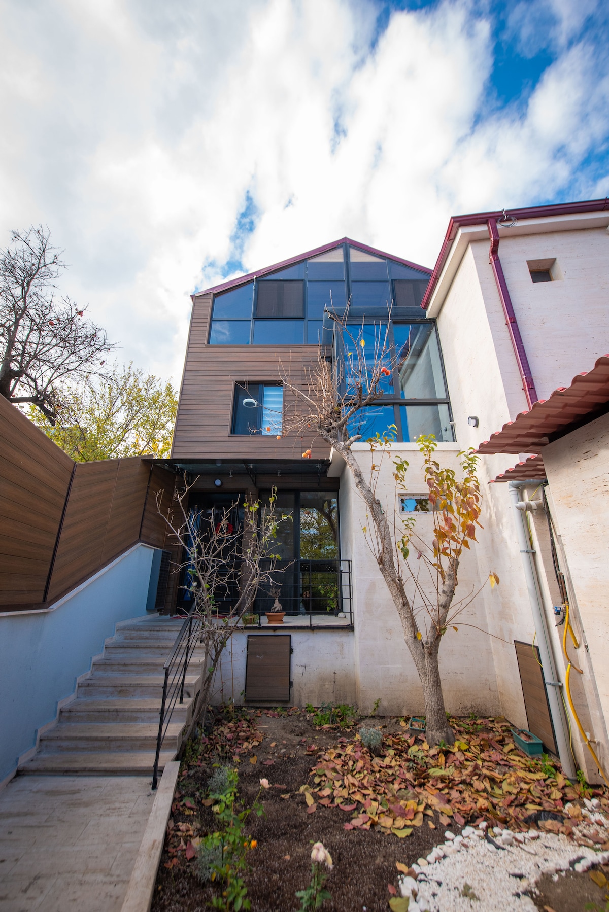 This amazing three-story house is centrally located, just a 15-25 minute walk from Holy Trinity Cathedral of Tbilisi, Avlabari metro station, Old Tbilisi, Maidan, and more. The house boasts exquisite interior design with decorative wallpapers from Dutch designers, mosaic tiles, and plants. You'll find all the amenities including appliances, furniture, and a smart TV for a comfortable stay. Special features include an infrared sauna and a spacious attic on the third floor with breathtaking views.