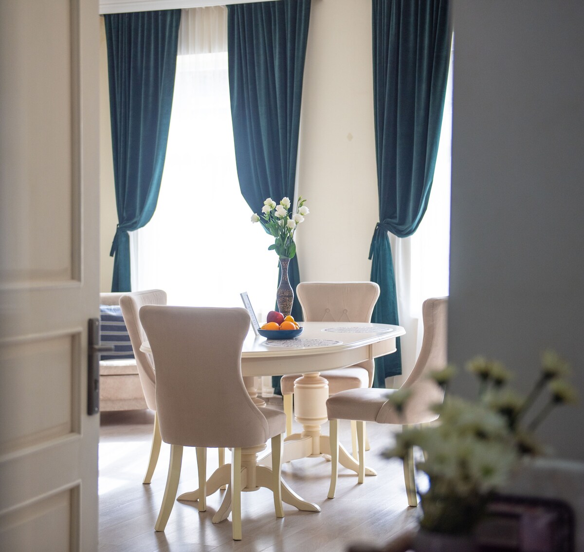 This is an amazing apartment with the best location in the city (1 minute walk to Rustaveli Avenue and 1 minute walk between the Parliament building and the apartment). It is 130 square meters in total, has a huge living room, two separate bedrooms, a large balcony with a table and chairs, 1.5 bathrooms and a kitchen. It has all the necessary things, it is very beautiful and brilliant. The apartment has high ceiling, which is rarely fundable in the city