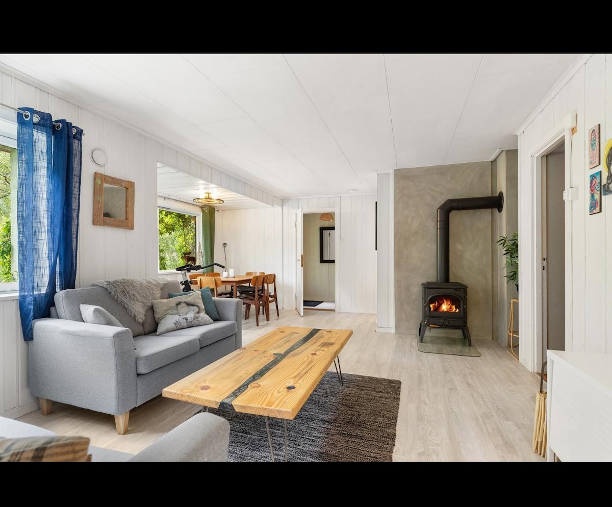 Ta med hele familien til dette flotte stedet med mye plass . Leiligheten er nyoppusset og innehar helt nytt bad - stue + 2soverom m/ dobbelt senger ferdig oppredd + sovesofa i stuen hvor sengetøy er plassert under enden av sovesofa. Barneseng er i skap soverommet.Nytt kjøkken og eget vaskerom med vaskemaskin og tørketrommel . Egen stor terasse med grill og møbler .Egen parkering for flere biler utenfor . Mulighet for EL bil lader v/forespørsel .