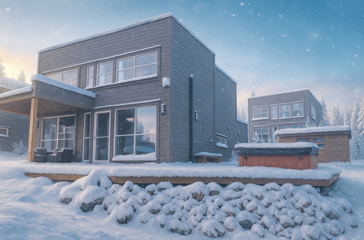 宽敞漂亮的小木屋,距离水域50米,靠近滑雪场