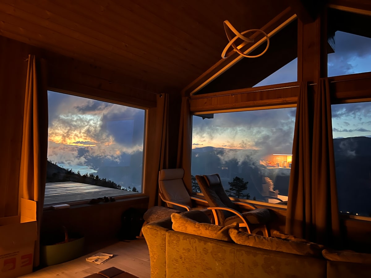 Moderne hytte på 150 kvm leies ut - ligger helt for seg selv - ingen naboer! Hytta er bygd i 2022 og har en romslig stue-/kjøkkenløsning med store vinduer. Dette gir en unik følelse av nærhet til naturen og fantastisk utsikt til både skog, fjell og vann. Stor terrasse på 100 kvm rundt nesten hele hytta gir gode solforhold hele døgnet