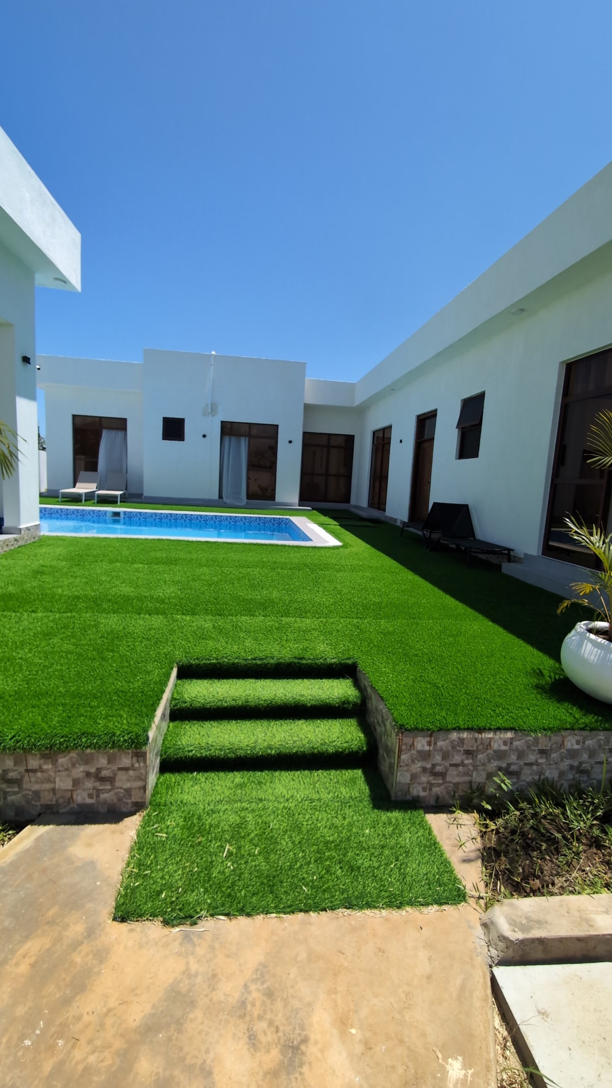 Kick back and relax in this calm, private, stylish home. Villa Lazizi Diani Beach- Quiet, tranquil and close to shops, restaurants and entertainment. A beautiful tropical garden and just a 350m comfortable walk to the best white sand beach in Africa and voted the 5th best white sand beach in the World. Or take a dip in the private large beautiful blue pool. 2 large air-conditioned bedrooms with en-suites. Fiber internet, a fully equipped kitchen with European fittings throughout the house.