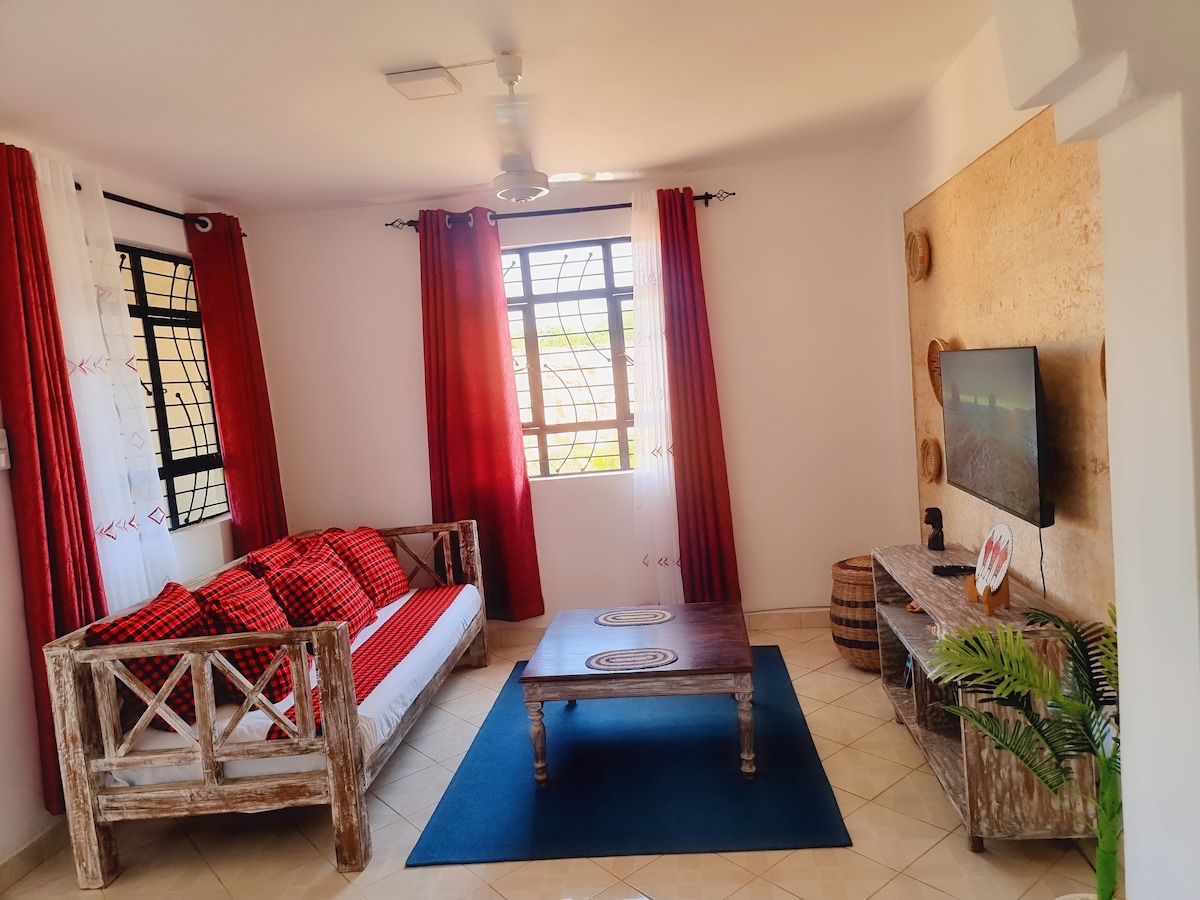 Welcome to our peaceful, fully-furnished 2-bedroom unit short-stay BnB, located just 10 minutes from Ukunda and 20 minutes from Diani Beach. Perfect for couples or families. Feat: 2 Bedrooms (sleeps up to 3 couples) Living room with L-seating Fully equipped kitchen and dining counter. Tiled toilet, shower. No hot shower Spacious balcony for relaxing Whether you're here for a weekend getaway or short-term work trip, Kombani BnB offers a clean, quiet, and affordable stay. Kombani, Kwale, Kenya.