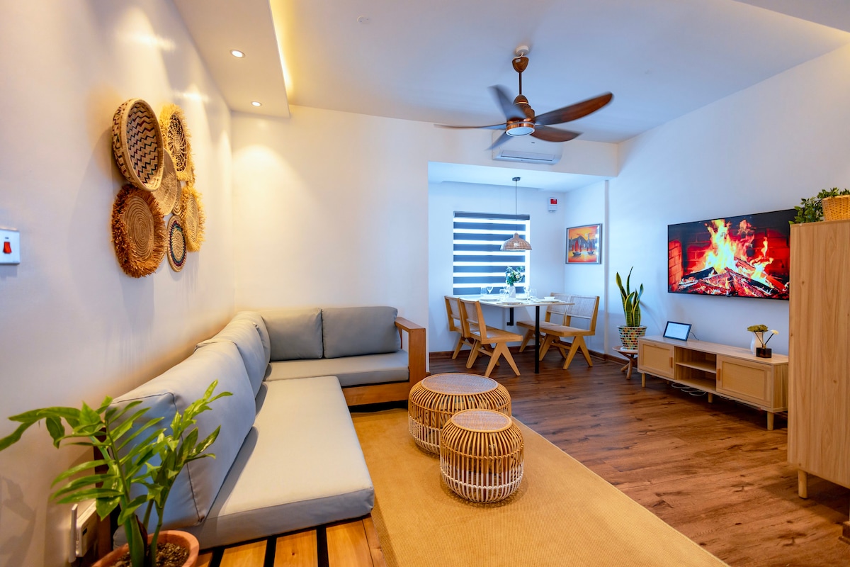 Experience modern coastal luxury like never before. This stylish one-bedroom apartment offers beach access just a two-minute walk away and features a spacious living area with a 75-inch Smart TV and high-speed WiFi. Enjoy premium amenities including a rooftop infinity pool, a fully equipped gym and an picturesque view of the sea. Located in a vibrant area near top restaurants, resorts and attractions, this apartment is the perfect blend of comfort, convenience, and seaside serenity