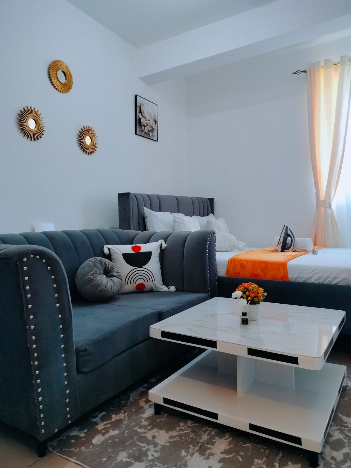 ✨ About this space Experience coastal elegance at Cutie Coastal Studio, a refined retreat near Bamburi Beach. Enjoy a sleek grey aesthetic, marble finishes, plush bedding, high-speed Wi-Fi, and Netflix-ready TV. Perfect for discerning guests seeking comfort, style, and convenience — moments from Haller Park, City Mall, and fine dining. 🌅