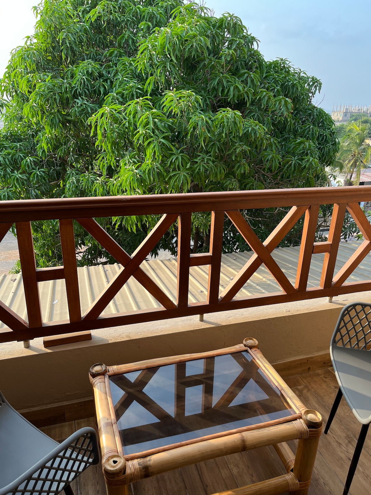 Space: A warm smoke-free studio apartment, beautifully furnished with a clean bathroom. It comes with free high-speed Wi-Fi, Air conditioning, a 55-inch Smart TV and a fully equipped kitchen with a washer. The unit has a balcony with outdoor furniture for your relaxation. The Location: Cozy studio apartment across from Accra mall. Only 10 mins drive from the Int'l airport. The property is very convenient to shops, restaurants, clubs, pub/lounges, Labadi beach and interesting places.