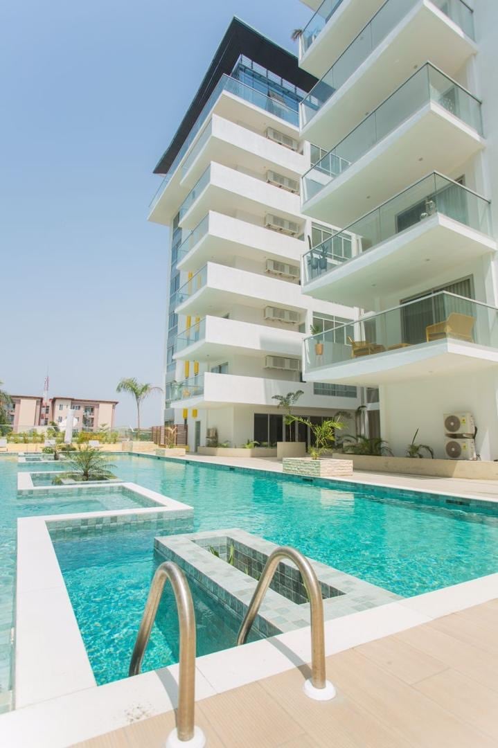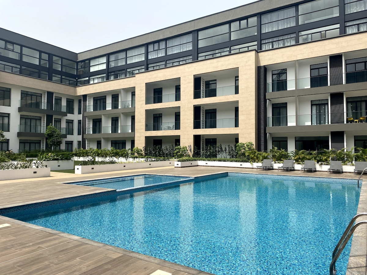 Take it easy at this unique and tranquil getaway studio apartment located within the prime and secured Cantonments area near the US embassy. Excellent location; 7 mins from Kotoka International Airport and within 10min radius from the city's major shopping centers and restaurants. It offers guests a cozy feel from the inside and breathtaking serene view of the pool and beautiful garden. This newly furnished 2nd floor studio is designed to cater for business, leisure & long stays.