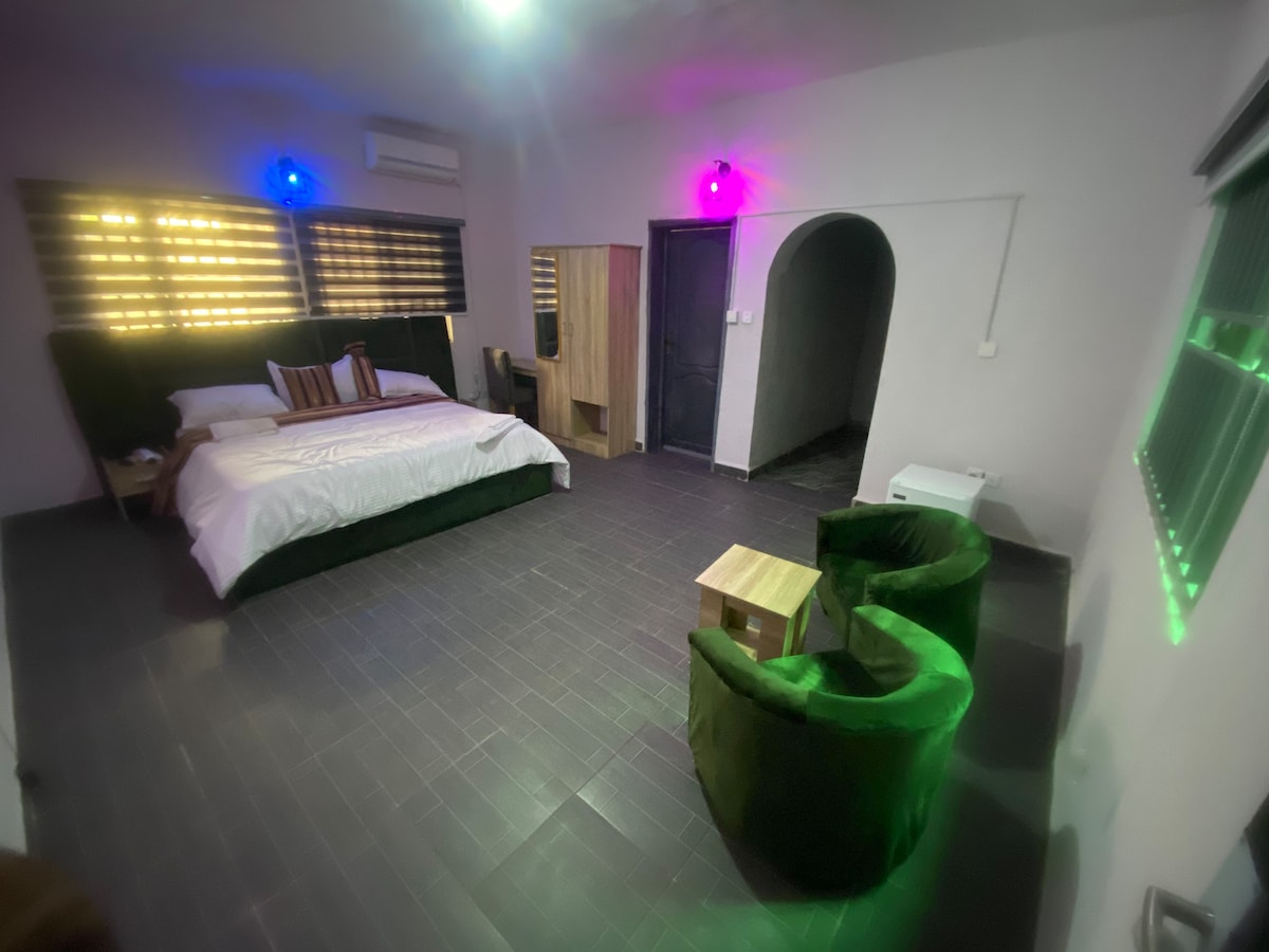 Forget your worries in this spacious and serene space. 24/7 power in the quite and secured GRA Offa. - - ⁠Close proximity to Owode Market , and alot more in the heart of Offa GRA . - - ⁠Easy access to Adesoye college , Ilorin Ajase -ipo road. - - ⁠fingerprint secured door locks - - ⁠Serene environment - - ⁠Super fast WIFI - - ⁠Netflix / YouTube/Dstv - - ⁠Outdoor sitting - - ⁠En-suite rooms - - ⁠Fully Fitted Kitchen - - ⁠Fully Air Conditioned --- spacious green garden area for events