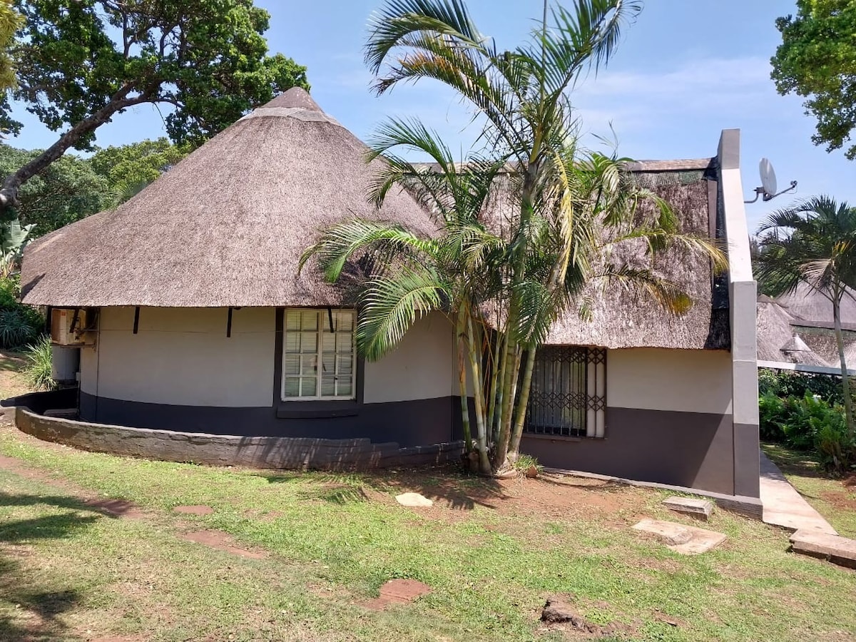 The delightful rondavel-style unit is fully equipped to accommodate four people. It is featuring two bedrooms and two bathrooms (one featuring a shower), a fully equipped kitchen & lounge area with a flatscreen tv, the unit also boasts a built-in braai space on the patio. Situated within a luxurious and secure holiday resort with free parking, guests can enjoy a range of amenities including two swimming pools, a tennis court, a putt-putt course, children's play areas among others.