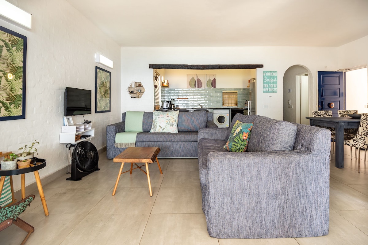 Privileged position Ground floor Front row, 2 bedroom, 2 bathroom (max 5 guests) seafront unit with BREATHTAKING sea and breaker views. Direct access from estate to 2 unique beaches ⛱ and tidal pools. Closest Family swimming pool just a few metres away with another 5 more around the estate. Outdoor gym, play area, nature trails and whale viewing deck also within the secure estate. Central Air-conditioning. Uncapped 30mbs Fibre WiFi, Samsung Smart TV & private covered patio with garden area.