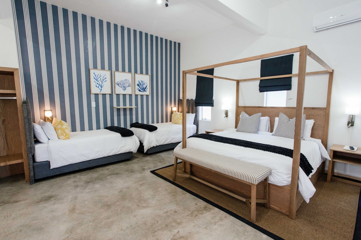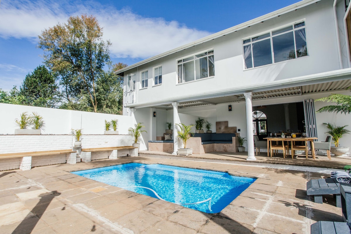 4 Bedroom (1Q, 6 singles), 4 ensuite Bathroom (shower & bath available) with distant seaview. 2 single beds can be converted to a King upon request. Aircon in living area and all the bedrooms. Fully equipped kitchen for self-catering , feature amenities include a dishwasher, washer, dryer, water tank and Wi-Fi. Private pool, jacuzzi , sauna and pool table. 2 Outdoor areas with braai facilities and outdoor seating, the front balcony and a courtyard with braai.