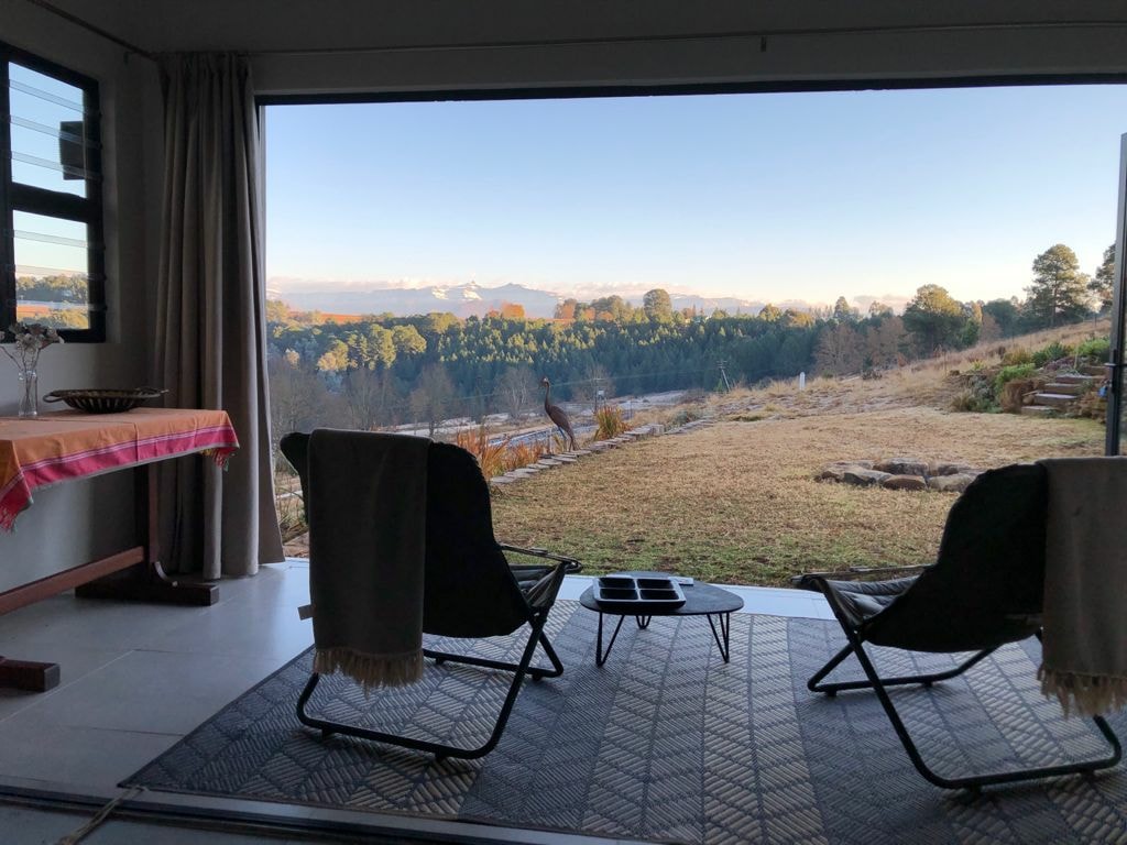 Sunset View Cottage is a free standing upmarket, exclusive, romantic couples’ getaway on a small holding in rural Underberg KZN. This stylish, newly renovated cottage has double glazing throughout as well as insulation below the floor and in the ceiling.There is 1 bedroom with a queen bed en-suite with shower. The living area is open plan for comfortable efficient living. The cottage is extremely well equipped with everything you need to make your stay a home from home.