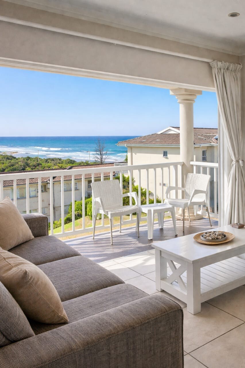 An exquisite, newly renovated, modern apartment, all to yourself, with breathtaking views and direct beach access. Equipped with an inverter and gas stove for loadshedding. This 3 bedroom home is spacious and airy and offers you one of the most magical views of the Indian Ocean. Whale watch from your couch and watch the sunrise from the comfort of your bed. Located in a secure estate with tennis courts, a jungle gym, trampolines, braai facilities, you can enjoy the ultimate beach holiday.