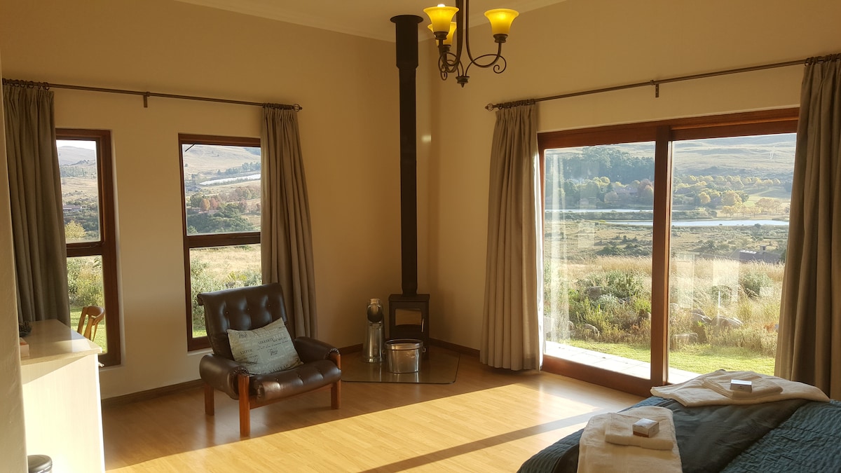 Highland Peace Haven is a spacious 3-bedroom retreat designed for comfort and relaxation. Unwind in extra king-size beds with luxurious Egyptian cotton linen and electric blankets for cosy nights. Enjoy the indoor fireplace, fast Wi-Fi, and a reliable backup inverter system. The open-plan living area flows onto a covered patio with a built-in braai and pizza oven, plus a full-size pool table with a table-tennis top—perfect for family fun and relaxed evenings. Fly fishing gear avail upon request.