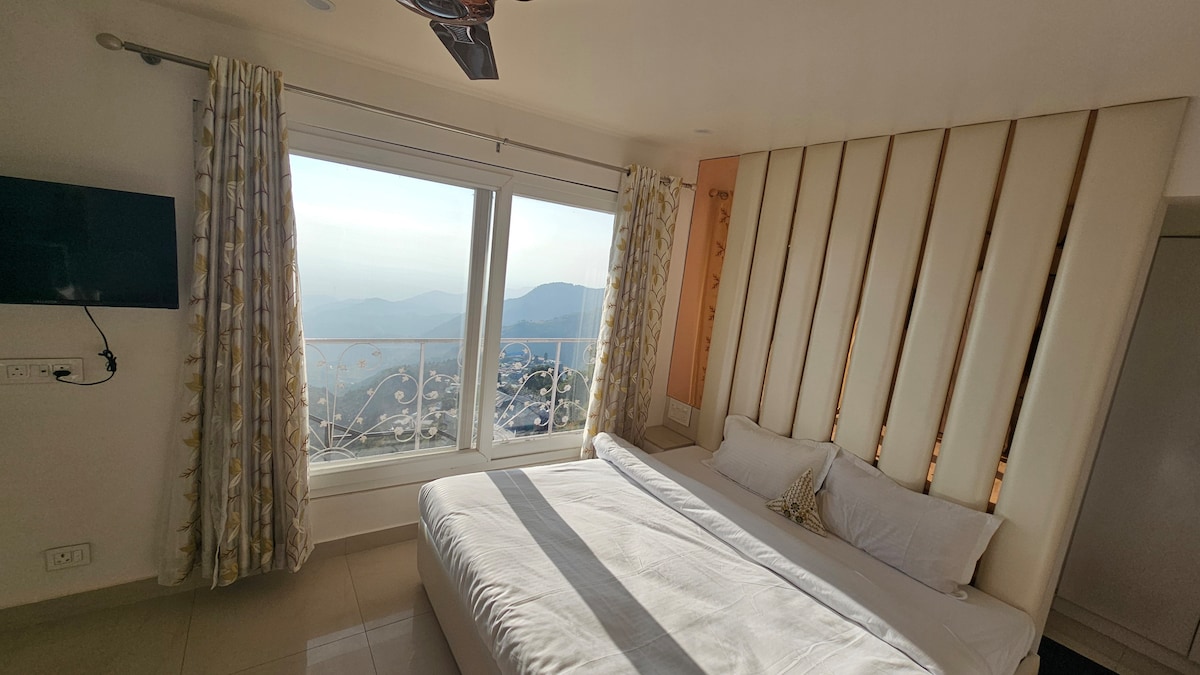 This is 1RK studio, tastefully furnished that would make you fall in love with the ‘Queen of Hills’. The entire property offers a gratifying view of the Doon Valley. This studio has a Queen size bed with enough space for an extra mattress. It has Chair and Tables for dining and remote work The kitchen is equipped with all the necessities. The studio also has a TV and a refrigerator. The shower bath is well built and maintained, with all modern facilities.