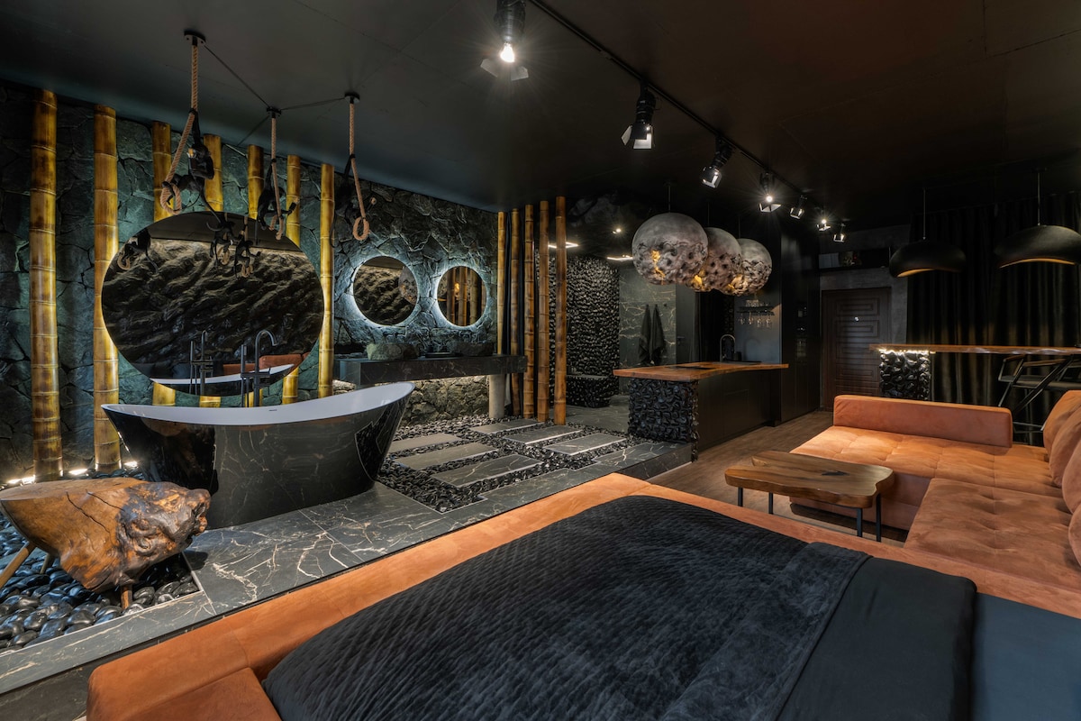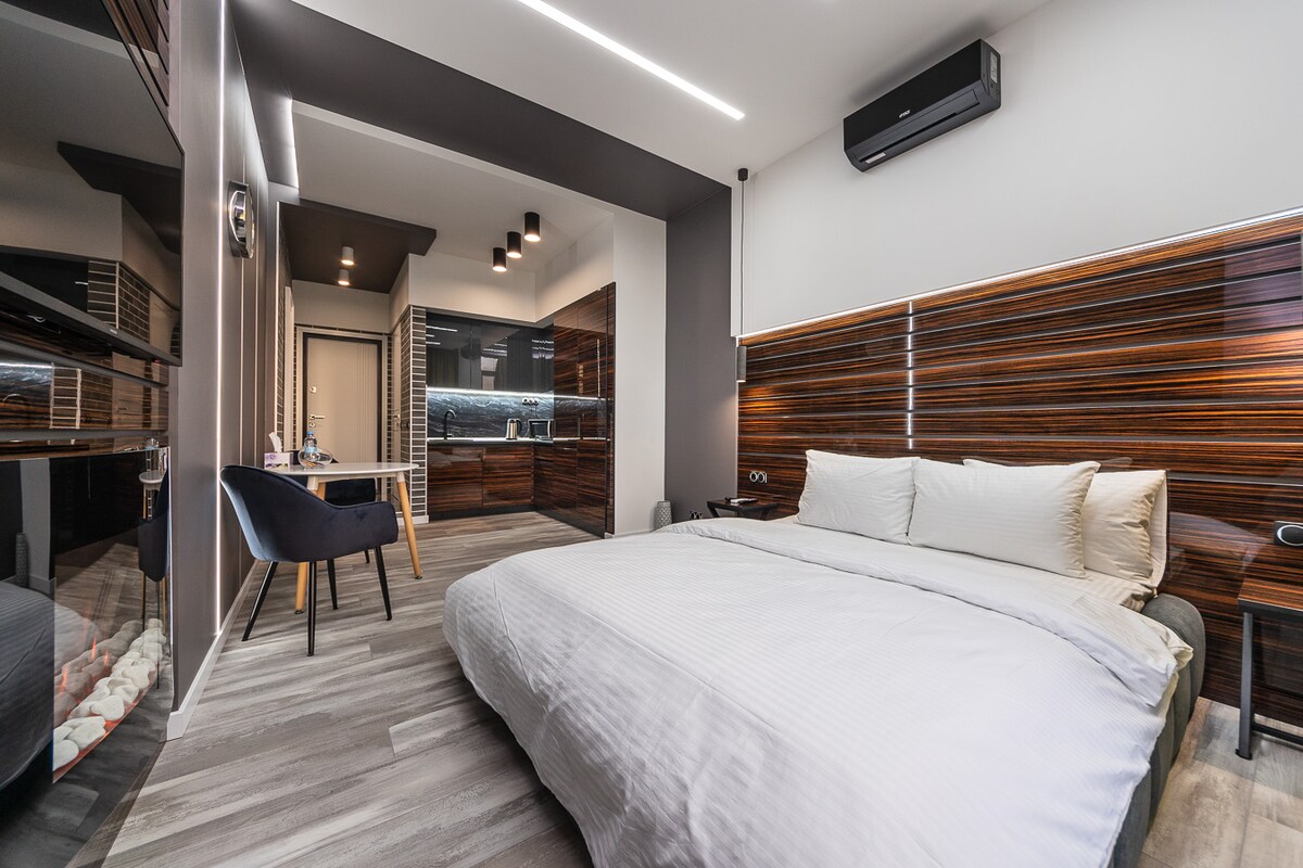 豪华单间公寓,配有按摩浴缸和壁炉