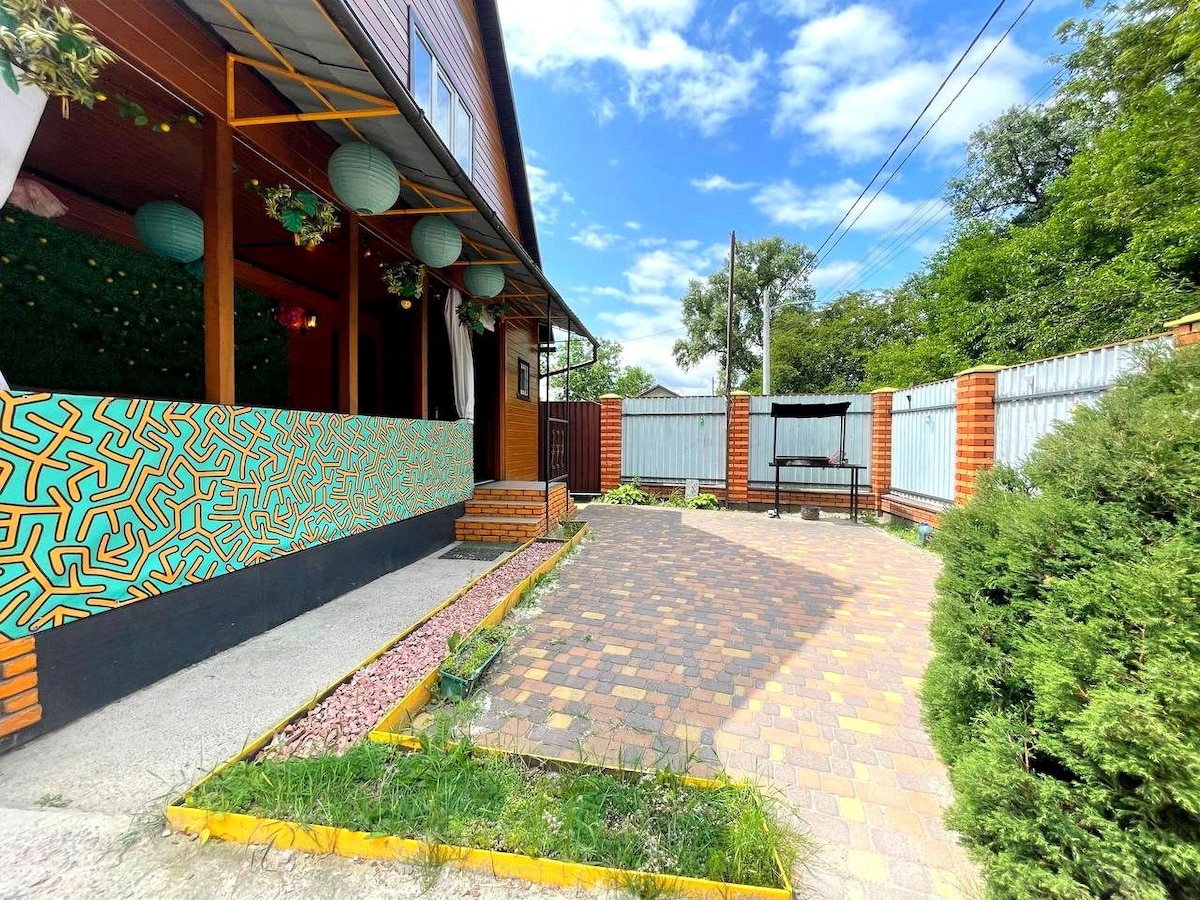 Apartments in the suburbs of Kiev, 25 km from Boryspil airport (30 min.) 5 minutes from the Wish Family Space, 3 km from the Zofferano restaurant. A great place to relax outside the city, to Kiev 9 km. Possibility of hiking and cycling, fishing on the own pier of Lake Zoloche, private beach, boat. Throughout the summer season, the fruits of our own garden and vegetable garden, grown without the use of harmful substances. High-speed Wi-Fi, parking, transfer, beautiful view!