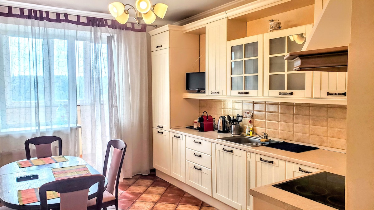 Светлая и уютная квартира в центре Киева. VIP уровень с приятным интерьером, есть 2 отдельные спальни !!! Кухня укомплектована всей бытовой техникой и посудой. Квартира расположена в деловом центре столицы - максимально рассчитана на четверых человек. Рядом находятся туристические достопримечательности столицы Софиевский собор , Михайловский собор, Золотые ворота, Андреевский спуск, а так же огромный выбор ресторанов и кафе!