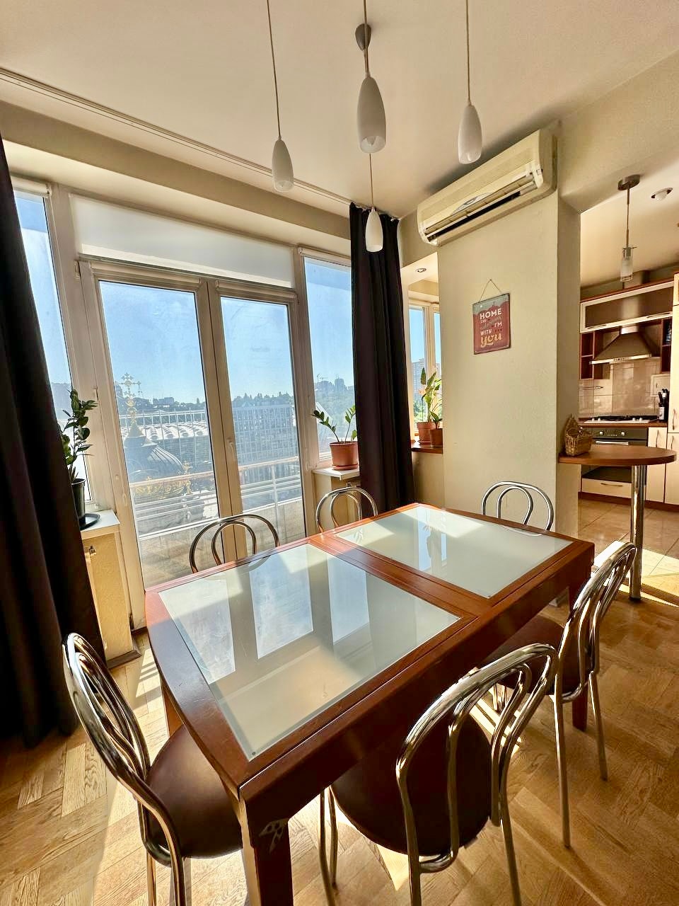 Note: there is always electricity and Internet at the property. Spacious 150 sqm apartment is located in the beautiful historical part of Kyiv, most central location. It is newly renovated apartment with all the new and fresh amenities for your comfortable stay. There is 2 air conditioners: one in main living room and one in the biggest bedroom. Flat located on 5th floor (please note there is no elevator). 2 mins walk to the National Opera House, 5 mins walk to Khreshatyk Street and Arena City.