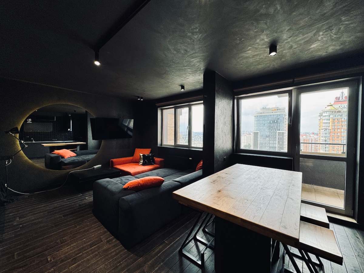 新房源Obolon Residences Premium Class的黑色公寓