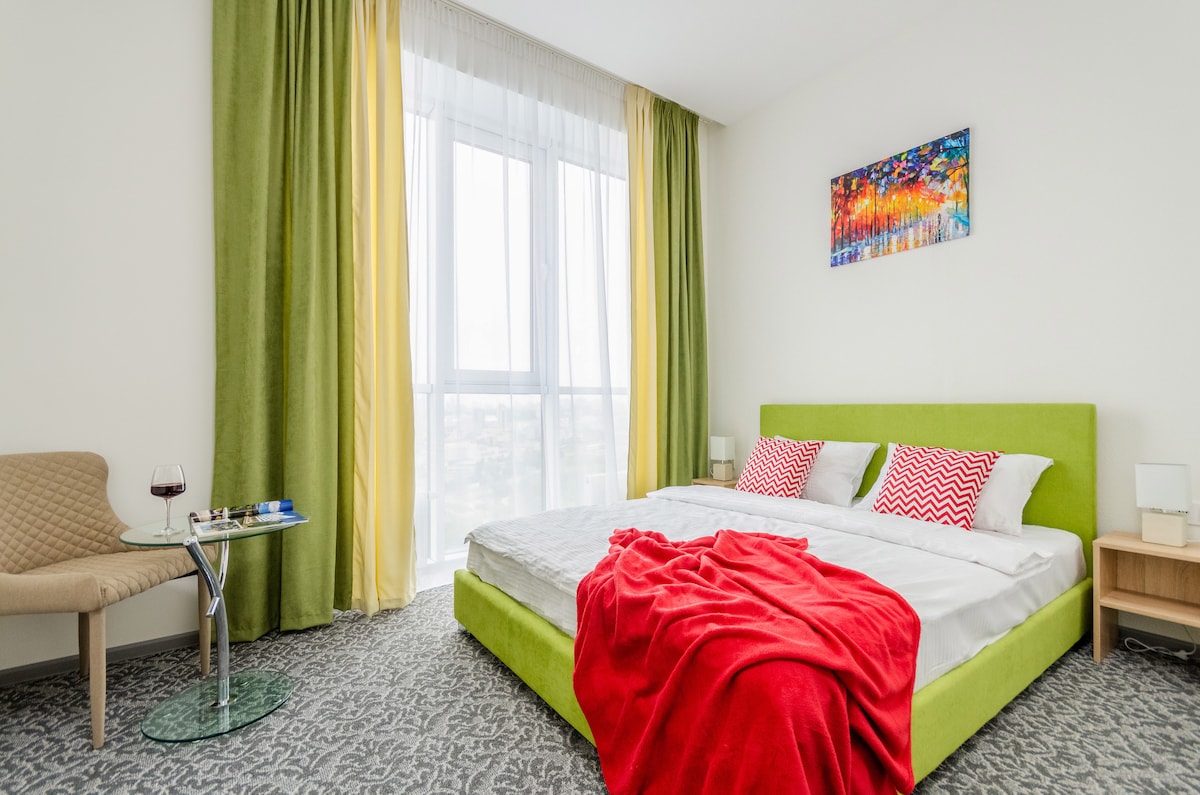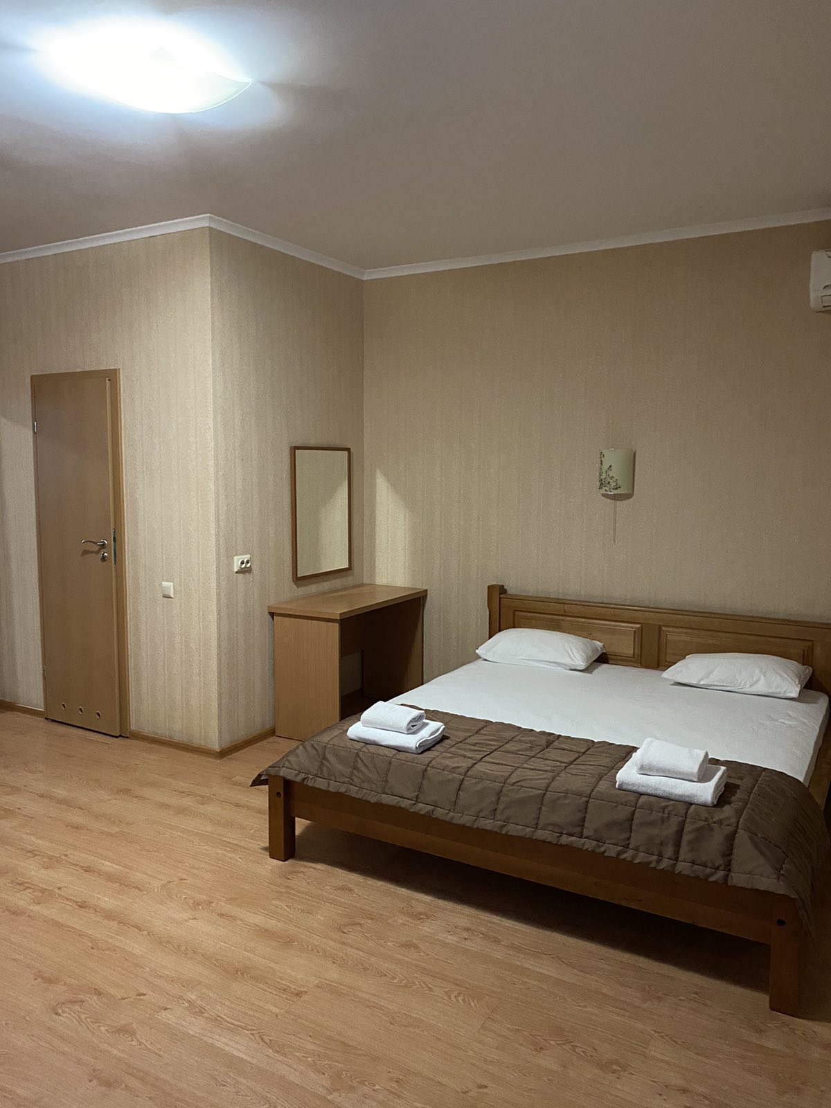 Апартаменты с двуспальной кроватью, кондиционером, холодильником, телевизором, электрочайником, телефоном, обогревателем, а также удобным мебельным гарнитуром. Мини-отель на Кропивницкого — уютные однокомнатные апартаменты в центре Киеве, которые позволяют предложить качественные услуги размещения. Утюг, гладильную доску, услуги сейфа, звонок будильник, такси, справочную информацию и многое другое Вы сможете получить по звонку на наш круглосуточный ресепшн