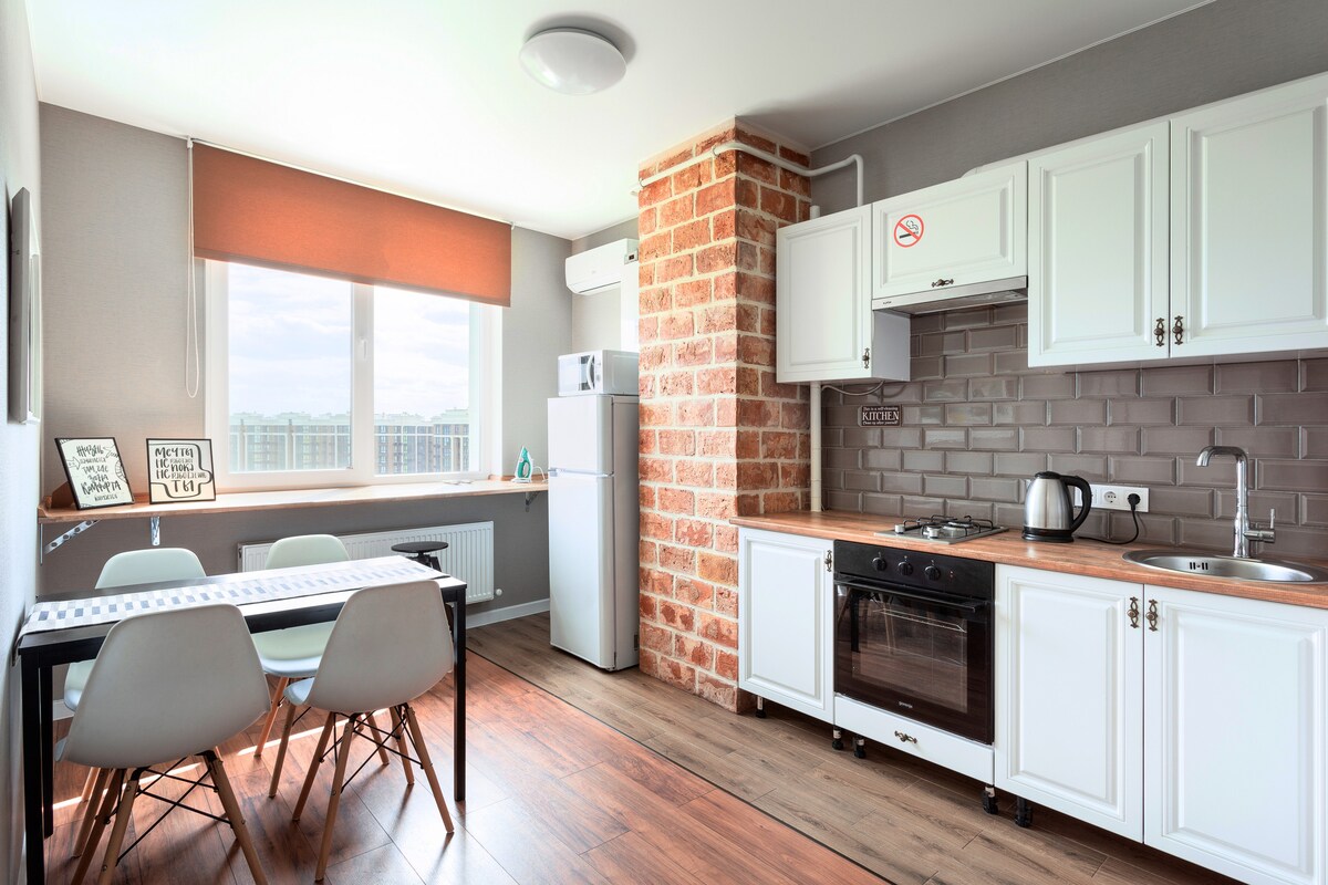 平均评分 5 分(满分 5 分),共 19 条评价现代设计休闲住宅区的双卧室公寓Kiev