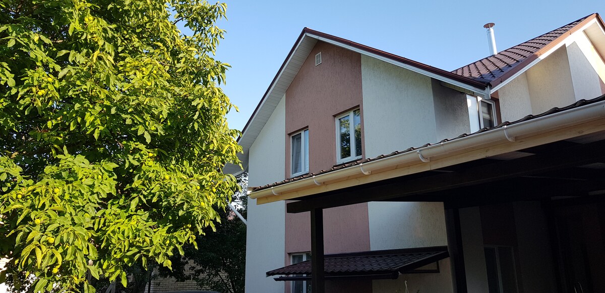 Гостевой дом, 8 км от станции метро г.Киева до остановки городского транспорта 300 метров, рядом продуктовые магазины ,и рестораны, до центра города 3 км есть сауна на дровах, мангал.