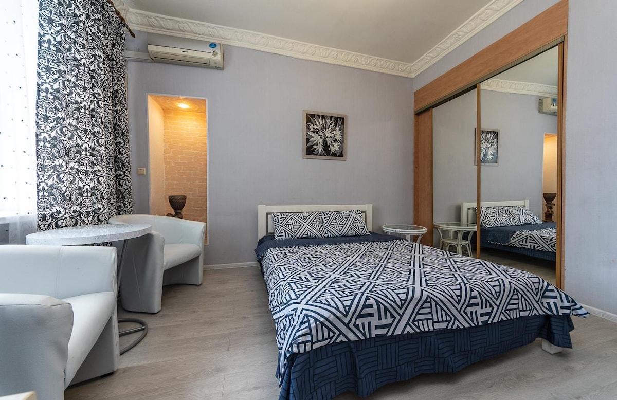 Комфортно,стильно, функционально. дорогая мебель премиум сигмента ( кровать с ортопедическим диваном и топером)Метро возле дома 150 метров через дорогу ТРЦ Проспект.Охранная система и видео система безопасная для гостей.Электронная станция для зарядки электромобилей во дворе дома