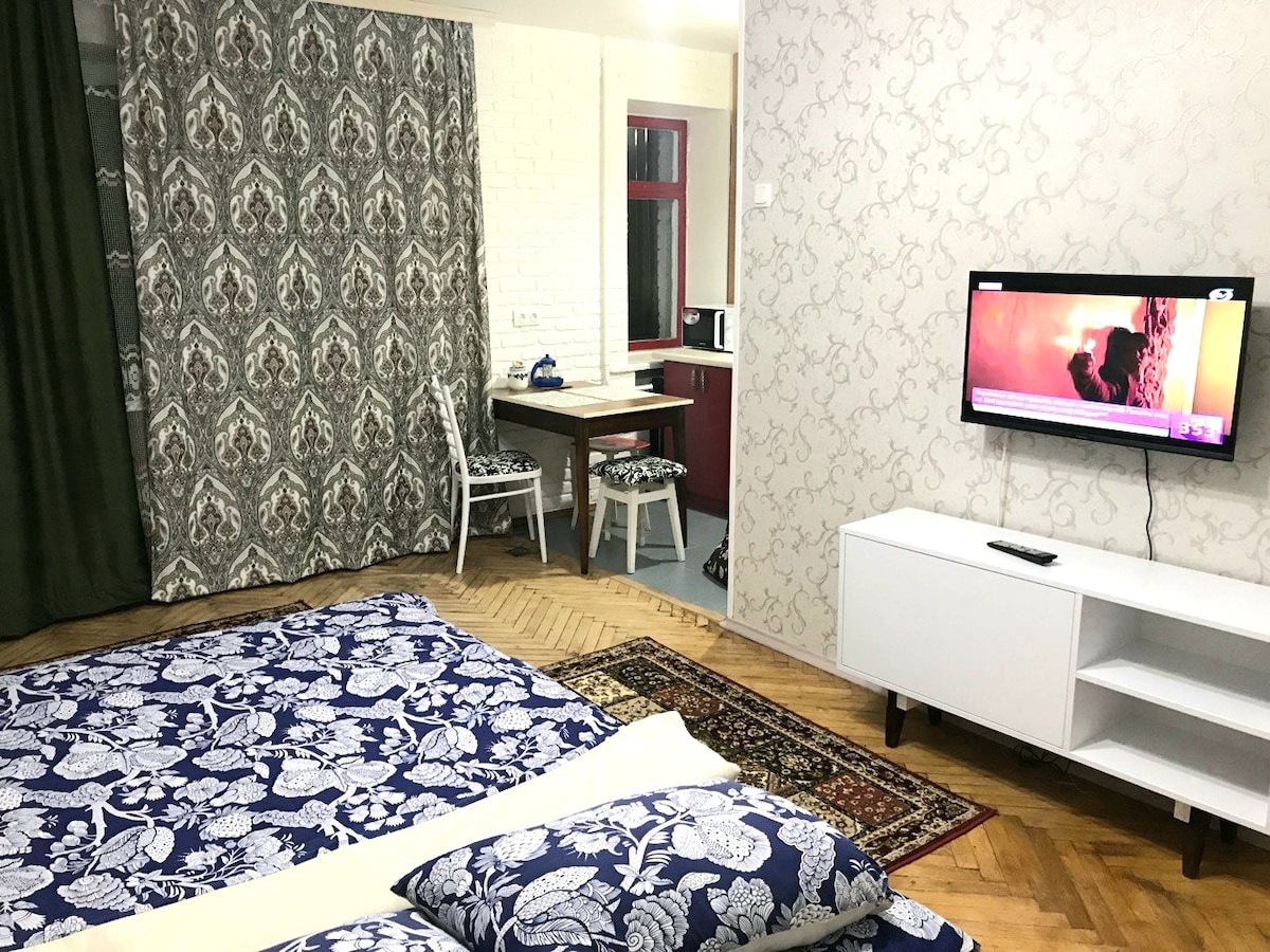 The apartment is located in the historical building of the city center. Its perfect for travelers who want to be in the middle of the city's events and who likes sightseeing. Guests who are going on the business trip will be comfortable there too. Lots of pubs, restaurants and different type of shops are nearby. There is everything you need for a comfort stay in the apartment .