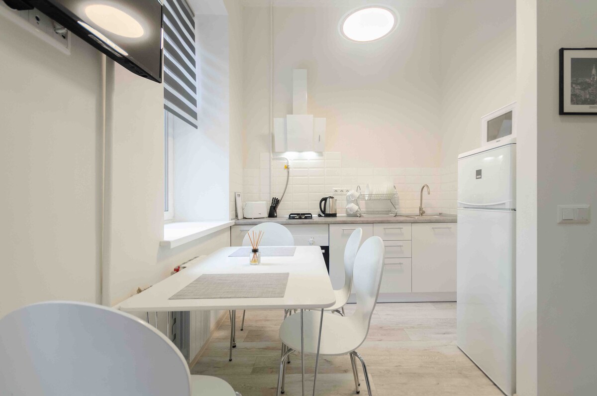 Important: as of this day the property consistently does not get planned electricity outages. An upscale modern designer apartment in the walkable Kyiv city centre. It is located on the historical Desyatynna street - a quiet passage linking Andriyivsky descent and Mykhaylivska square. This is the best location for your stay in Kyiv, neighboring the Intercontinental and the Hyatt hotels as well as unique restaurants and bars, city parks, and historical places.