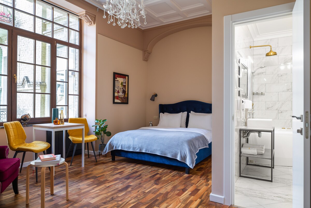 Amazing property located in the heart of center of Kiev inside Boutique Hotel. Renovation completed in 2021. Just a few amenities to list: 4 meter ceilings, Smart TV with YouTube and Netflix, shower cabin, extra large windows, large custom bed and much more. Those looking for luxury in the heart of Kiev center can not go wrong with this property. The property has a 24 hour reception located in the courtyard.