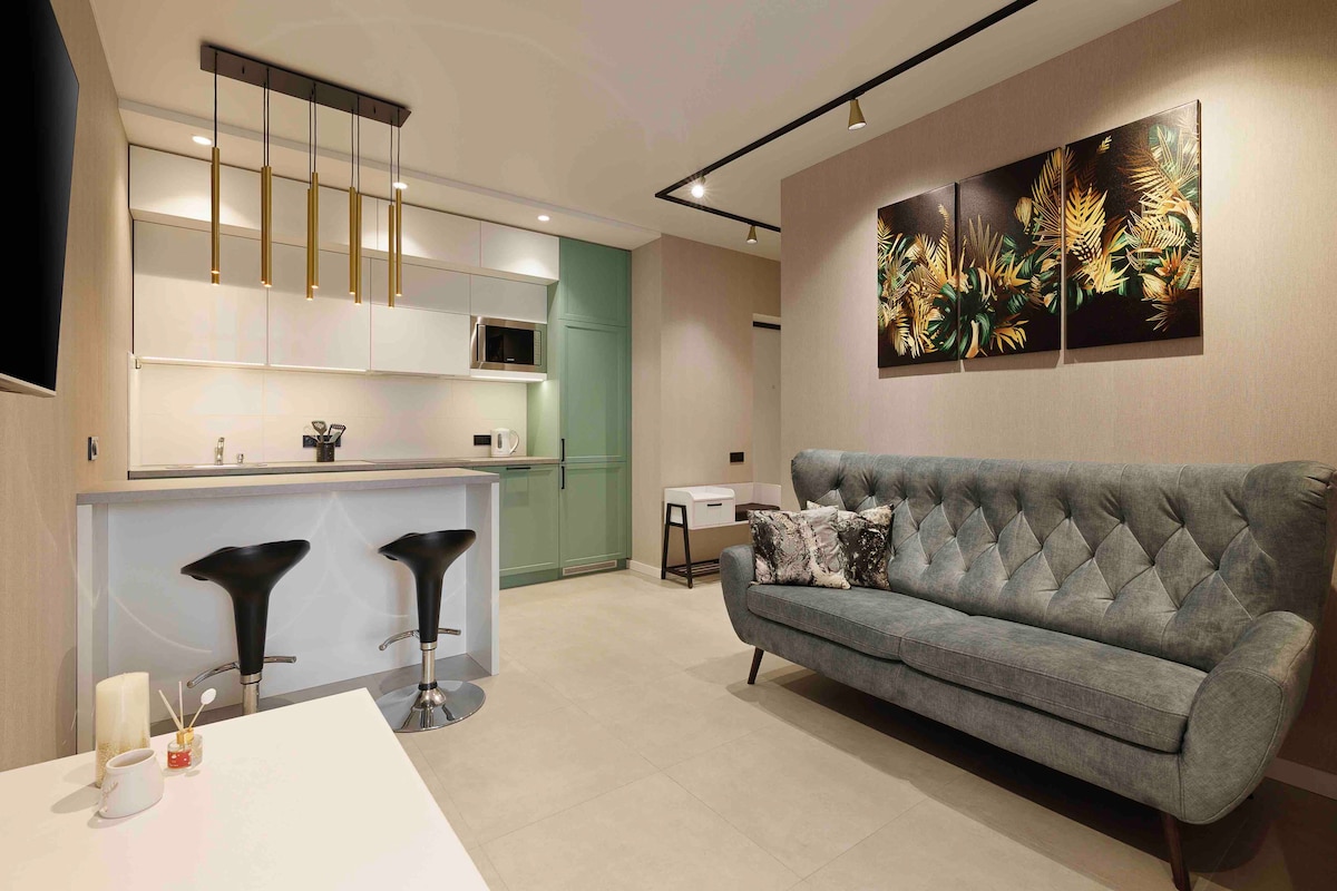 Hi there! My name is Julia and I am excited to welcome you at my brand-new designer apartments (35 sqm) in Kiyv. I am pleased to share with you this stylish contemporary apartment features an open-concept layout and tasteful decor. Here you can find everything you might need for your stay - high quality bed linen, hairdryer, iron, bath accessories and more. Feel free to start your day with a cup of a lovely coffee or tea of your choice as a compliment for your stay. Welcome home!