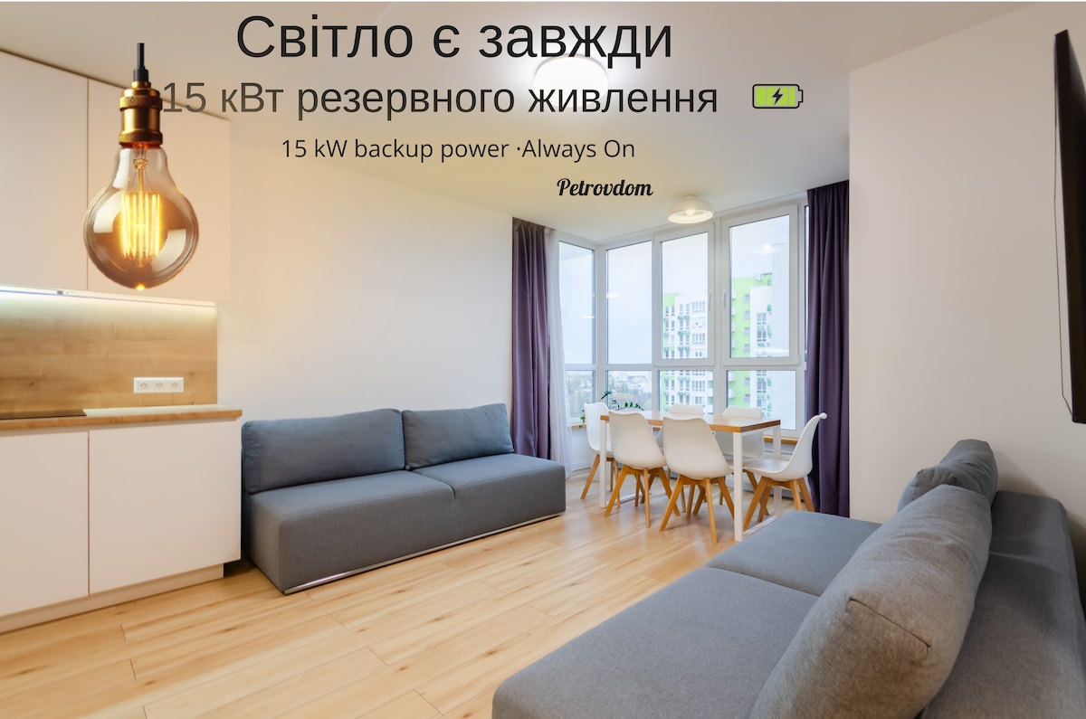 Cozy, clean studio apartment (58 Kakhivska st.) with modern renovation. In a spacious apartment with a separate bedroom, kitchen and living room area and hall. You will feel right at home! Perfect for both a business trip and for the purpose of relaxing after exciting walks in Kyiv. We are looking forward to seeing you! :-)