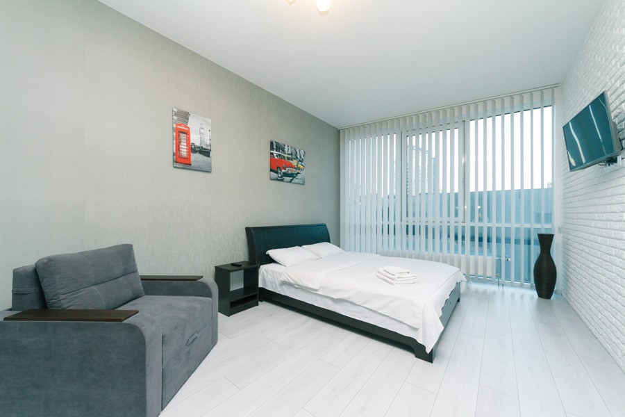У цьому помешканні ви чудово проведете час усією сім’єю. В кухні-студії є розкладний диван. Також у квартирі є ванна, пральна машинка. На кухні є необхідний посуд, посудомийна машинка та духова шафа. На території комплекса є басейн. Працює лише у теплу пору року. Багато дитячих та спортивних майданчиків. Зона BBQ доступна для наших гостей за попереднім бронюванням. Паркування на території комплекса. Працює відеонагляд та посиленна система охорони. Неподалік центр міста та метро Нивки