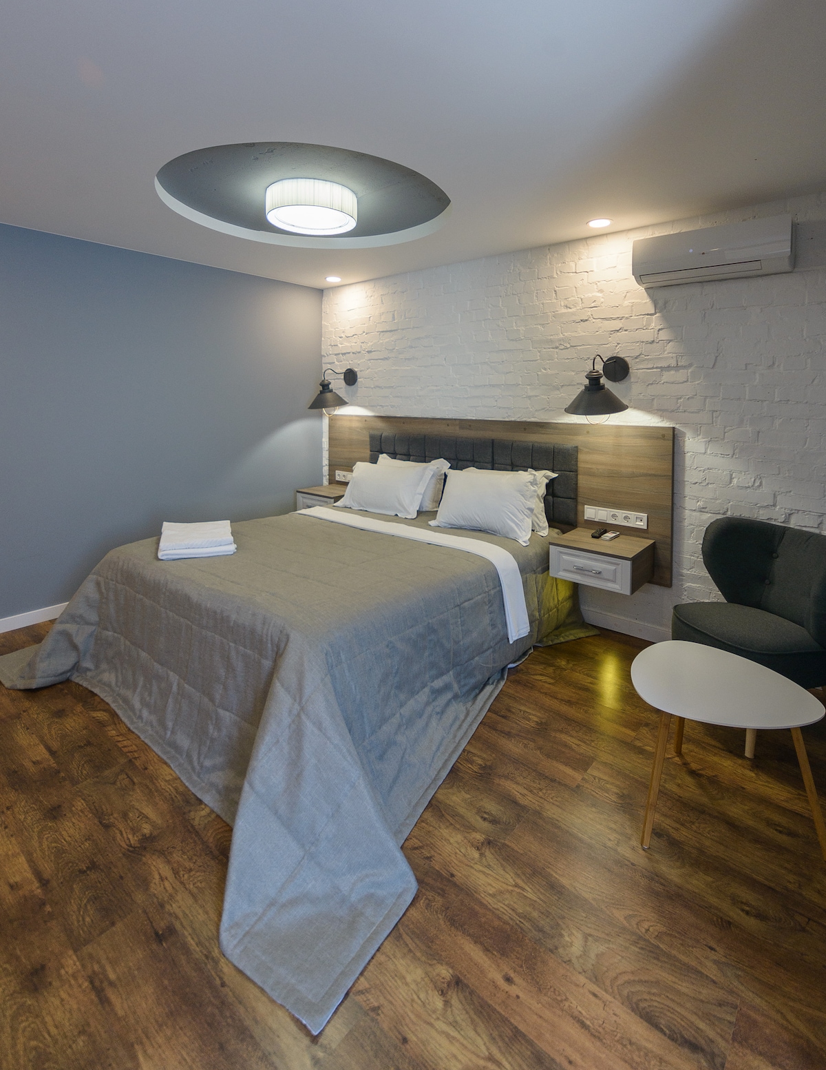 barasport city apartments Deluxe silver style - apartments that will make your trip unique and memorable! Convenient location in the business center of the capital on Kiev Pechersk, a new prestigious house located within walking distance from key business, retail, concert and sports outlets of the capital! No matter how long your trip is, you will no longer have to deny yourself home comfort and coziness. Designer apartments, equipped with new ergonomic furniture. One large double bed can easily be transformed into two separate single beds. We provide comfortable orthopedic mattresses, high-quality blankets, hypoallergenic pillows, a functional kitchen with all necessary equipment and utensils, water heater, spacious shower, washing machine, hairdryer and an iron. In addition, the apartments offer a work area with a comfortable armchair, Wi-Fi and a plasma TV. barasport city apartments - we took every detail into account so that you feel at home!