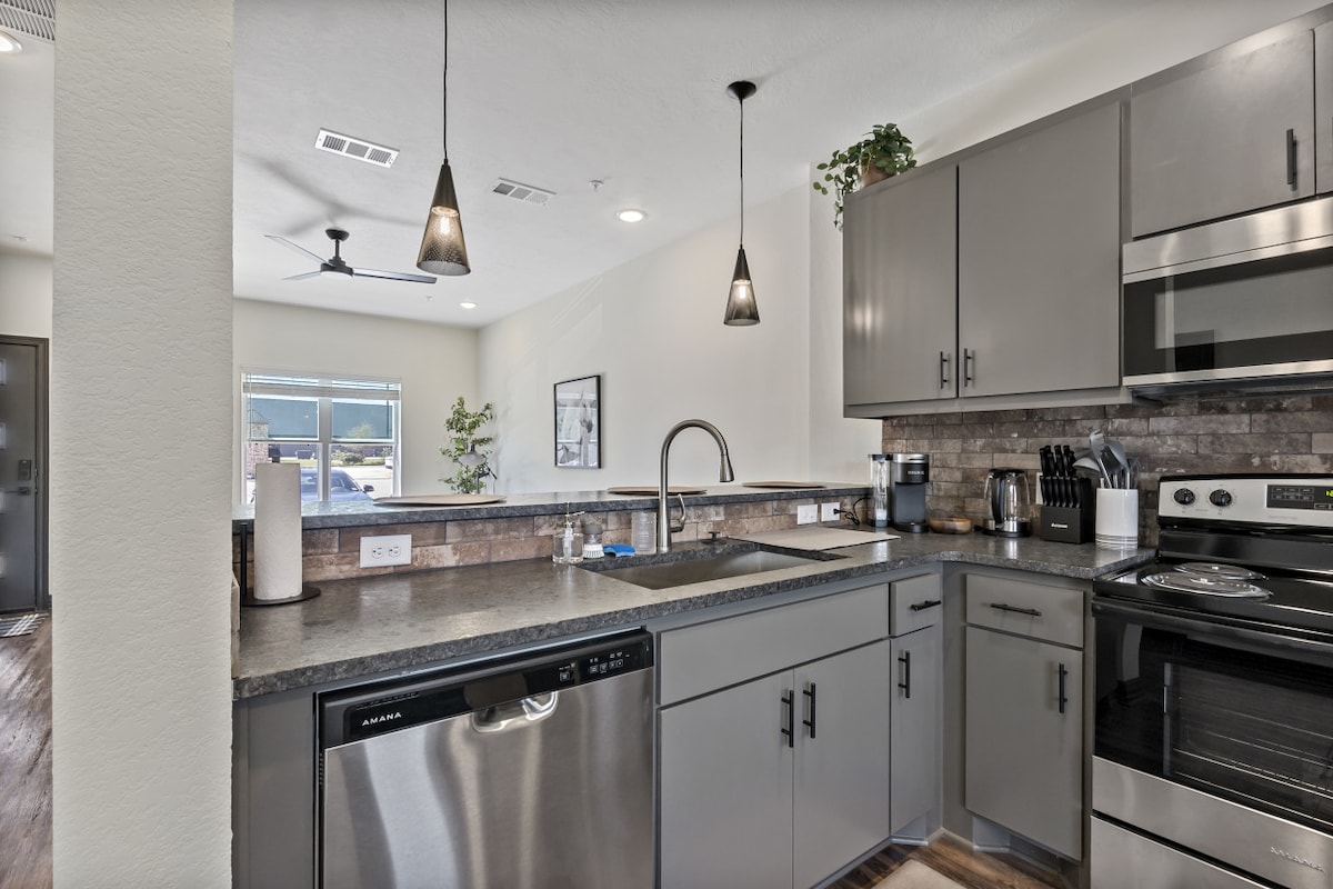 Enjoy a unique and stylish experience at this centrally-located corner townhome in downtown Bryan, TX. Whether it is a couple looking to get away for a few days or small family looking to visit the area, this new townhome is within walking distance from everything downtown Bryan has to offer as well as close proximity to many other Bryan and College Station attractions. Downtown Bryan also offers free gameday shuttles to Kyle Field on Aggie Football gamedays!