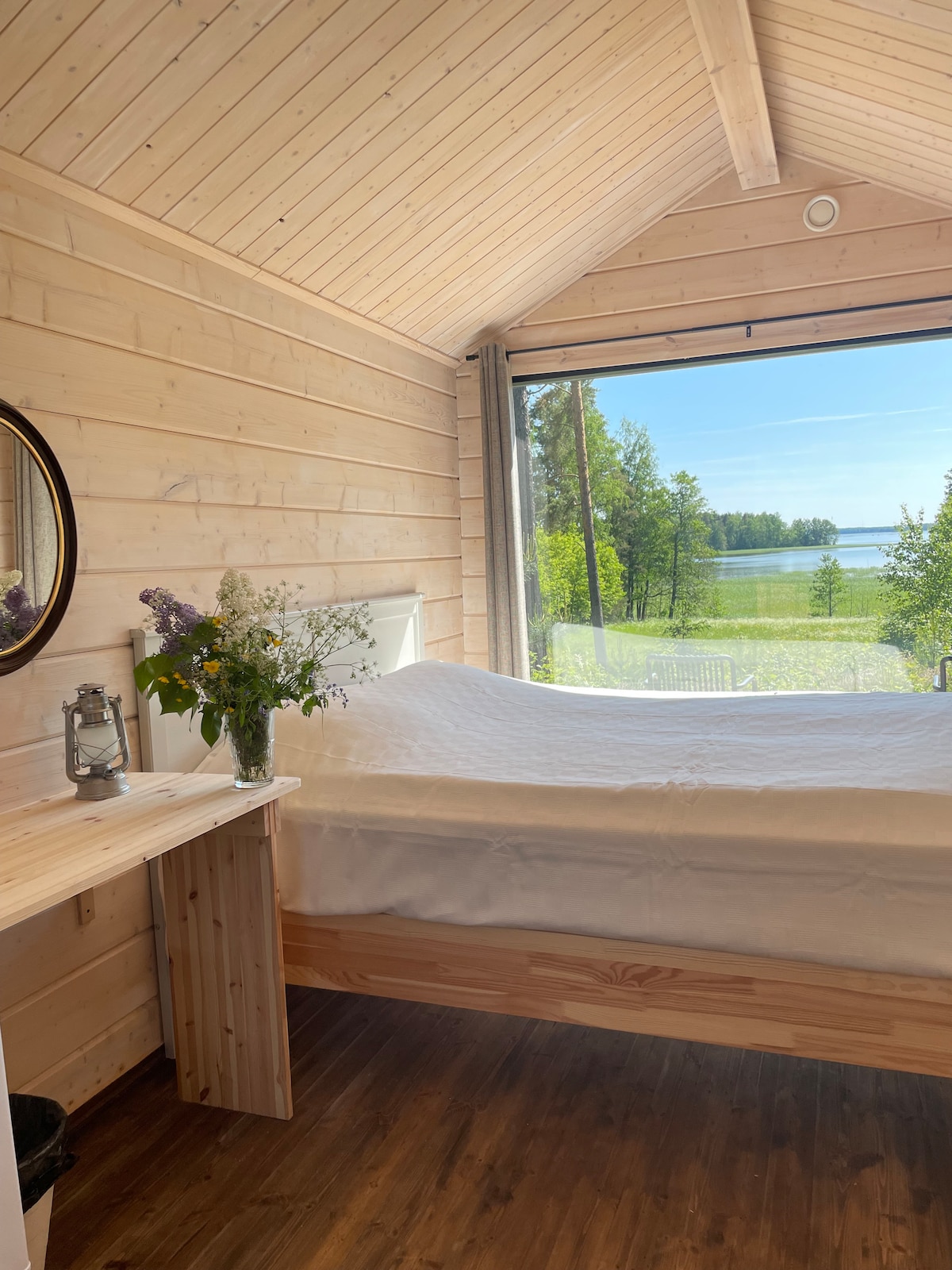 Ylellinen vuonna 2022 rakennettu pieni huvila kristallinkirkkaan Vuohijärven rannalla, Repoveden kansallispuiston läheisyydessä. Kaikissa huoneissa on suuret panoraamaikkunat ja huikeat näkymät luontoon ja järvelle. Mökki on varusteltu vaativaankin makuun kaikilla mukavuuksilla, pohjoismaisilla design-huonekaluilla ja nykytaiteella. Puulämmitteisestä saunasta on vain muutama askel loivasti syvenevälle hiekkarannalle ja isolle laiturille, jolta pääsee pulahtamaan järveen ja talvella avantoon!