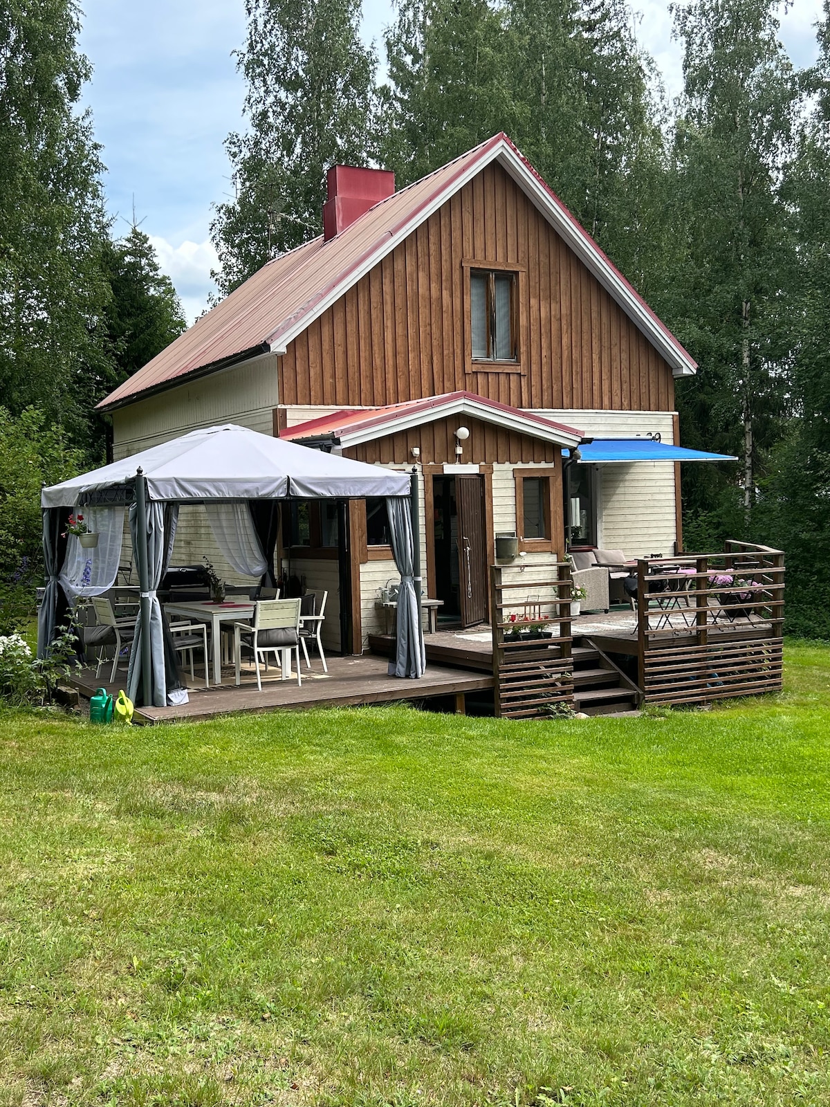 Modern and unique riverside villa in Kotka on the bank of the river Kymijoki. You will enjoy the amazing scenery by the river Kymijoki, only a 1.5-hour drive from Helsinki! The main house has sleeping capacity for four people. In addition, a separate heated garage with a granary for 2 people. Great outdoor activities, kayaking and fishing! The nearest shops are about 12 km away. The yard of the cottage can be reached by car all year round. No smoking and no pets indoors.