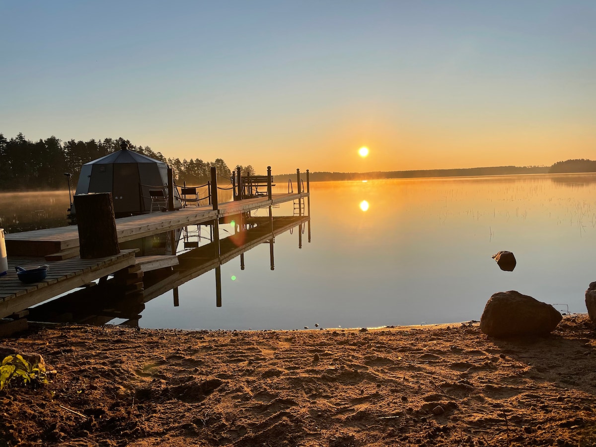 Miltä tuntuisi katsella auringonlaskua ja tähtitaivasta eksoottisesta lasi-iglusta? Iglu on varusteltu kahden hengen tunnelmallista loma-asumista ajatellen. Pääroolissa on lattiasta kattoon avautuva upea näkymä järvelle. Tunnelmallisessa saunamökissä (25m2) on sähkö ja vedet, ja se on remontoitu lattiasta kattoon. Mökissä on tupa, alkovi, takka, wc, puusauna ja suihku. Pihalta löytyy mm. katettu kesäkeittiö ja grilli.
