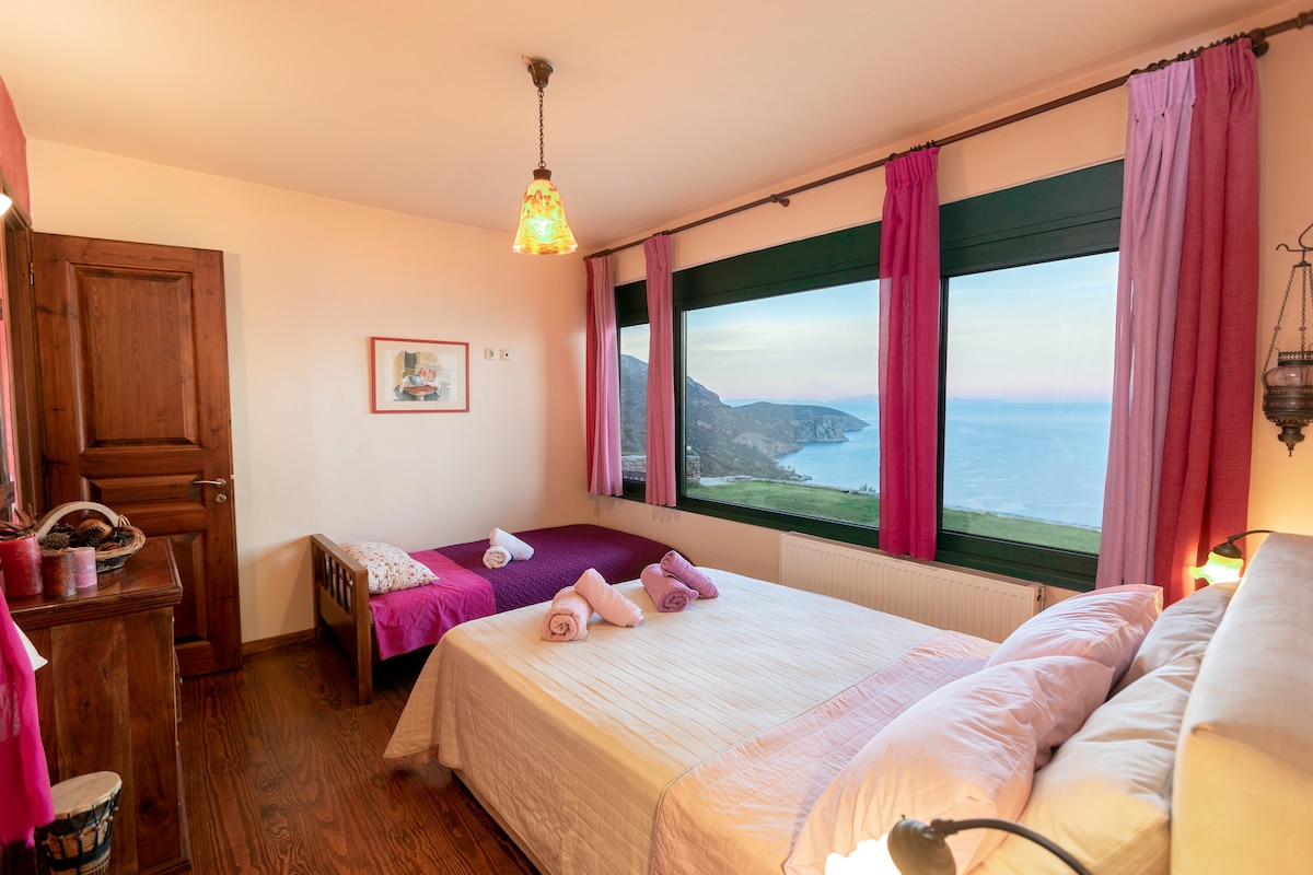 Experience traditional Greek village living at our enchanting house in Kamaritsa. Nestled atop a hill surrounded by lush forest, our vintage furnished cottage offers unobstructed views of the sea, village and trees. Enjoy cosy bedrooms, modern amenities, and forest walks or beach days, all just a short distance away. Indulge in the tranquillity and charm of our picturesque villa retreat.