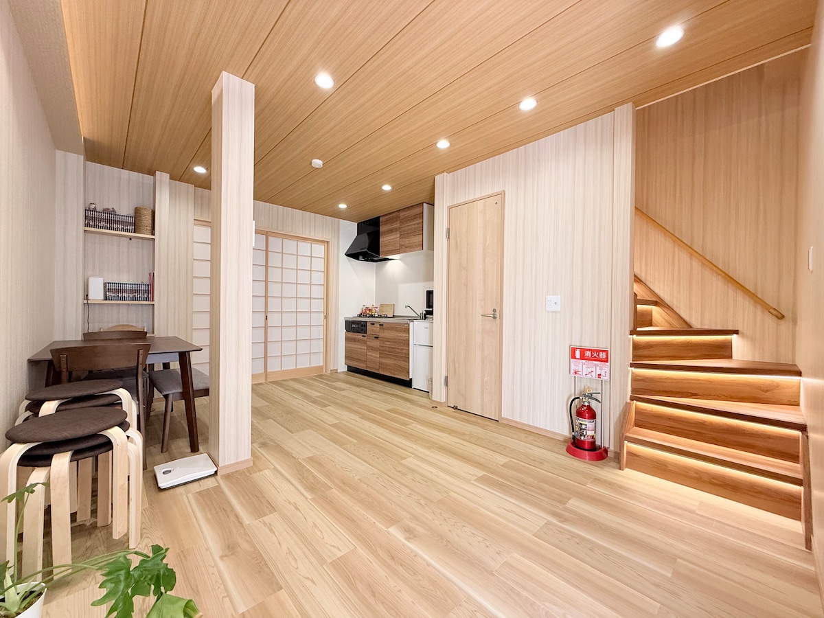 步入这栋隐于大阪市天下茶屋车站徒步仅4分钟日式民宿,仿佛穿越至一幅流动的和风画卷。这里,我们将传统日本的雅致与现代舒适交织,最多可容纳8位旅人,是您与家人、挚友共享日本旅行的梦幻居所。 **房源魅力:** - **和风诗境**:榻榻米散发淡淡草香,滑动门轻启,精致的品茶区静候您啜饮抹茶,沉浸于日本文化的悠远意境。 - **庭院秘境**:窗外竹影婆娑,枫叶摇曳,尤其在沐浴时,透过玻璃尽览庭院美景,仿佛与自然共浴,洗去旅途疲惫。 **周边与交通之美:** - **舌尖上的日本**:周边环绕地道日式餐厅,每一口都是对日本风味的深情礼赞。 - **直抵心扉的旅途**:关西机场直达天下茶屋车站,无需换乘,旅程从容启航。 - **关西风光尽揽**:车站交通如诗般流畅,京都的古韵、奈良的鹿鸣、神户的浪漫,以及大阪环球影城、通天阁、心斋桥与海游馆,皆触手可及. 在这里,您不仅入住一栋房子,更是开启一场真正的日本之旅。庭院的风铃轻响,浴室的自然低语,茶室的袅袅清香——每一处细节都在诉说和风的温柔。立即预订,让这场诗意的旅居成为您大阪记忆中最美的篇章!