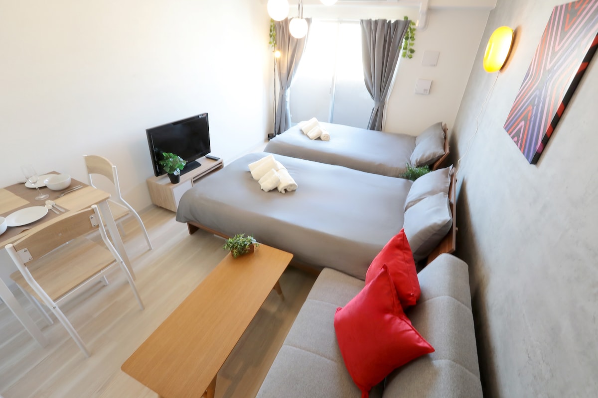 可携带宠物入住/全新开业/【距难波站2站】2间卧室/4张床