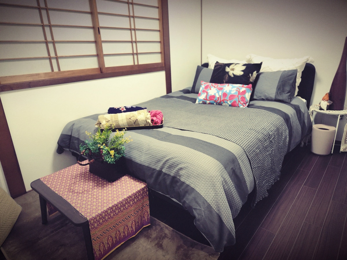 梅田・大阪駅は徒歩圏内です。難波・道頓堀へも簡単に行けます。 2LDK。地下鉄中津駅、阪急中津駅共に徒歩3分です。最大8名(大人6人子供2人)宿泊可能。 2ベッドルーム。エレベーター有り。 関西空港からバスまたは電車で梅田まで1時間です。 なんば・心斎橋・新大阪・天王寺は地下鉄中津駅から直通です。 ユニバーサルスタジオジャパン・大阪城、神戸まで約30分。 京都、奈良まで電車、車で約1時間。 Bed Room①:Double size bed×2 Bed Room②:Double size bed ×2 Also Living Room : Double size convertible sofa×2 Total 6 beds, max for 9 people stay. なんば 地下鉄で5駅 心斎橋 地下鉄で4駅 新幹線 新大阪駅 地下鉄で2駅 京都、奈良まで電車で約1時間 名古屋、岡山まで新幹線で約1時間 東京まで新幹線で約3時間。 近くにはコンビニ、スーパーマーケット、飲食店、公園、コインパーキングなどすべてあります。