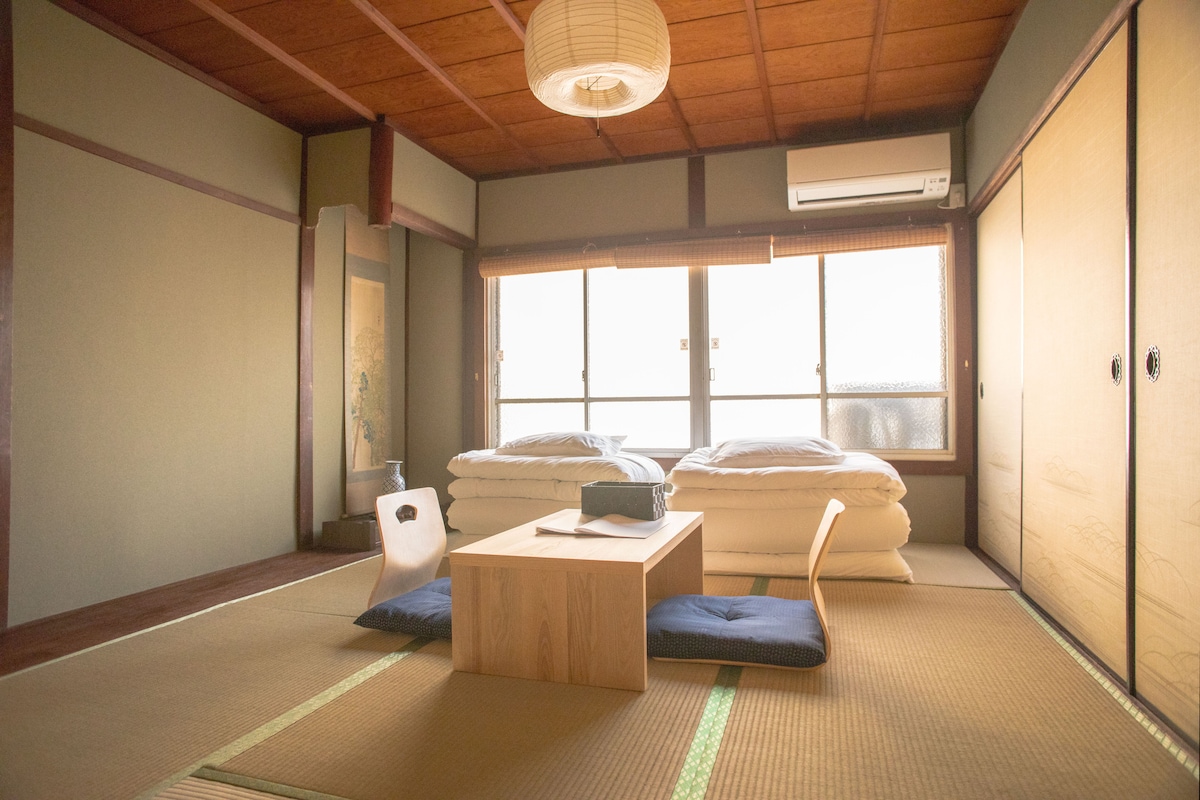 Experience traditional Japanese hospitality with all the modern conveniences. Tsuzumi and Christian welcome you join them in their beautifully restored 150 year old traditional Japanese home, located in the picturesque village of Kameoka, 25 minutes from Kyoto . Hozugawa kudari departure is 5 minutes from the house,Torokko train station 5 minutes from the house, Arashiyama is 10 minutes by train. Prices are intended with breakfast. Many experiences available ask us.