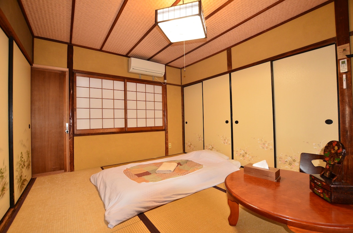 Higurashi-sou is a small guesthouse with 5 rooms only. This room is called 'Suisen' with unique Karakami paper doors with hand-drawn swirls and swimming frogs. (There are no bathrooms on the same floor. ) We can offer 'free bathhouse ticket', Enjoy our bathhouse culture with the locals! 10 minutes walk to Nijo castle. We love this neighborhood which shows fascinating local side. This is only for one person stay but we also have other rooms, please check our profile for more information.